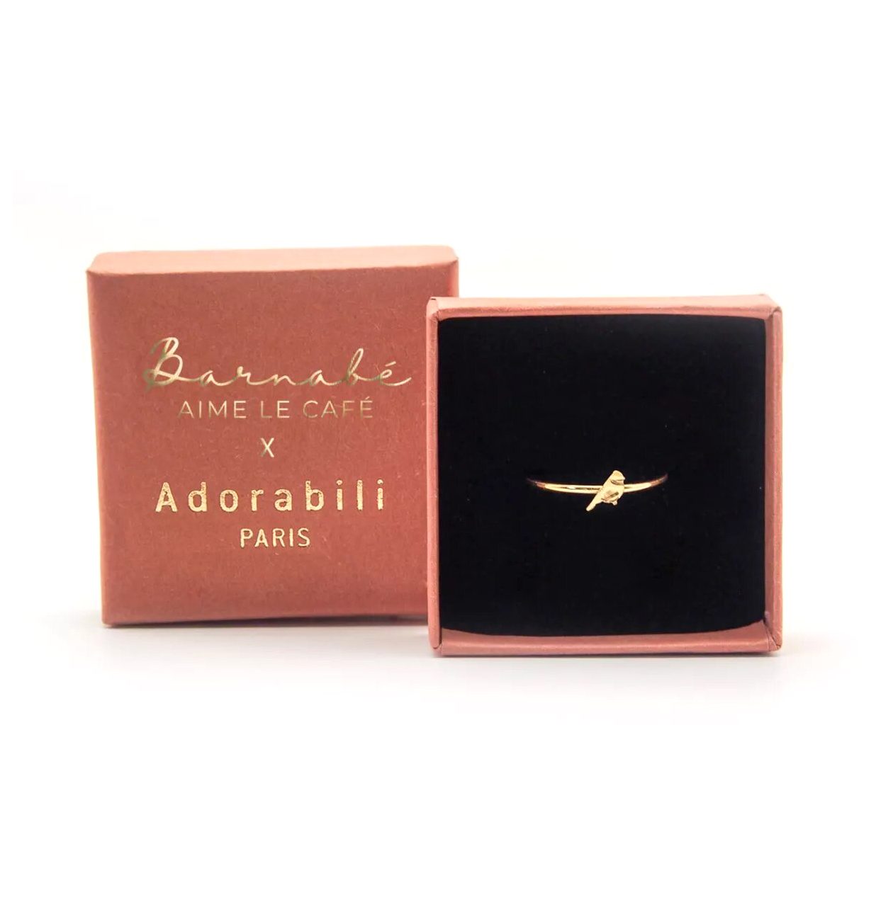 On craque pour cette jolie bague issu d’une collaboration entre la marque Barnabé aime le café et Adorabili Paris ! Deux univers très poétiques et délicats et l’amour des jolis bijoux sont autant de points communs entre Anne et Charlotte, les deux créatrices. On retrouve donc la jolie mésange, animal emblématique de Barnabé aime le café. Le petit plus? Cette bague oiseau est ajustable. Bijou doré à l’or fin 24 carats et fabriqué à Paris.