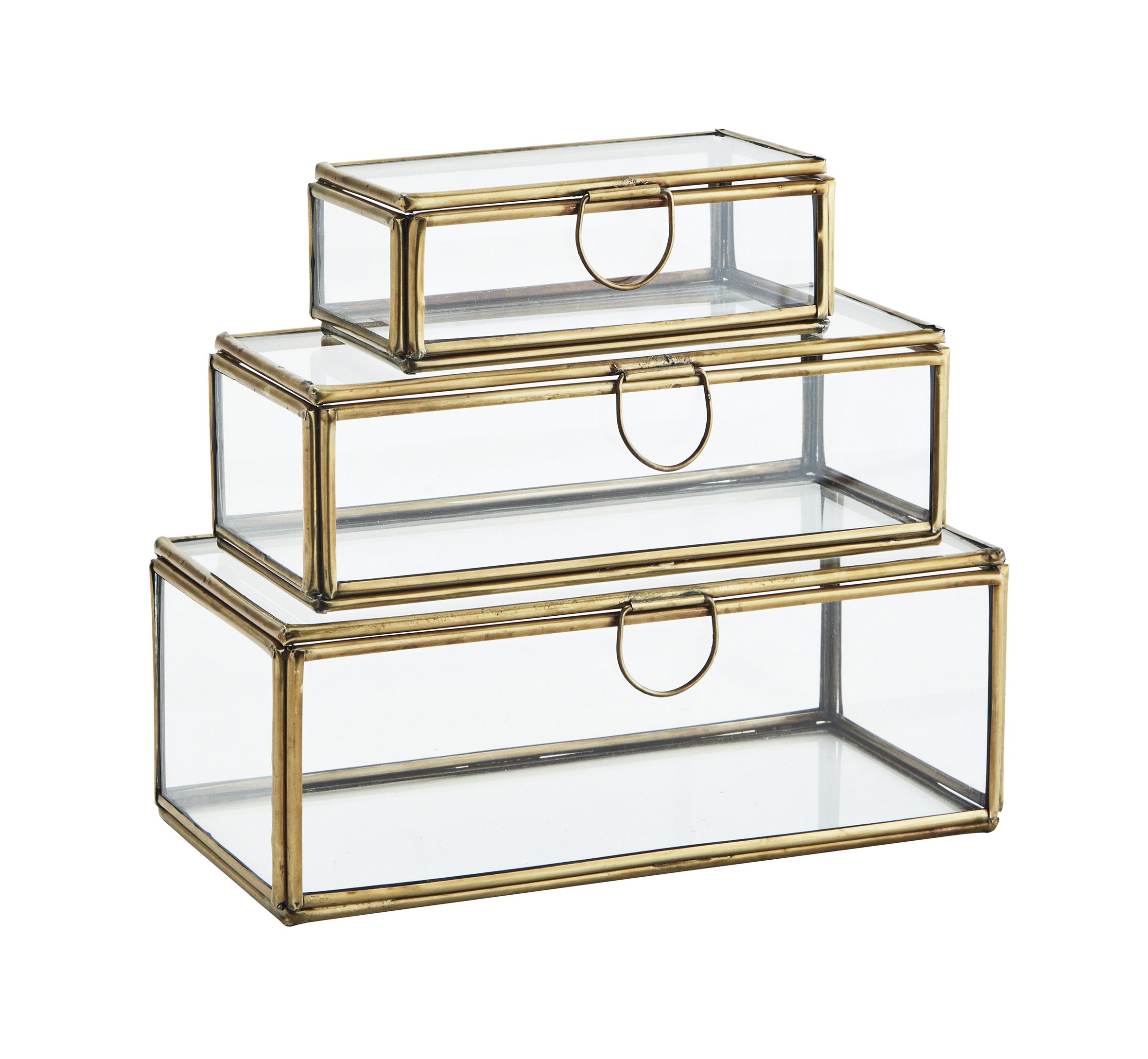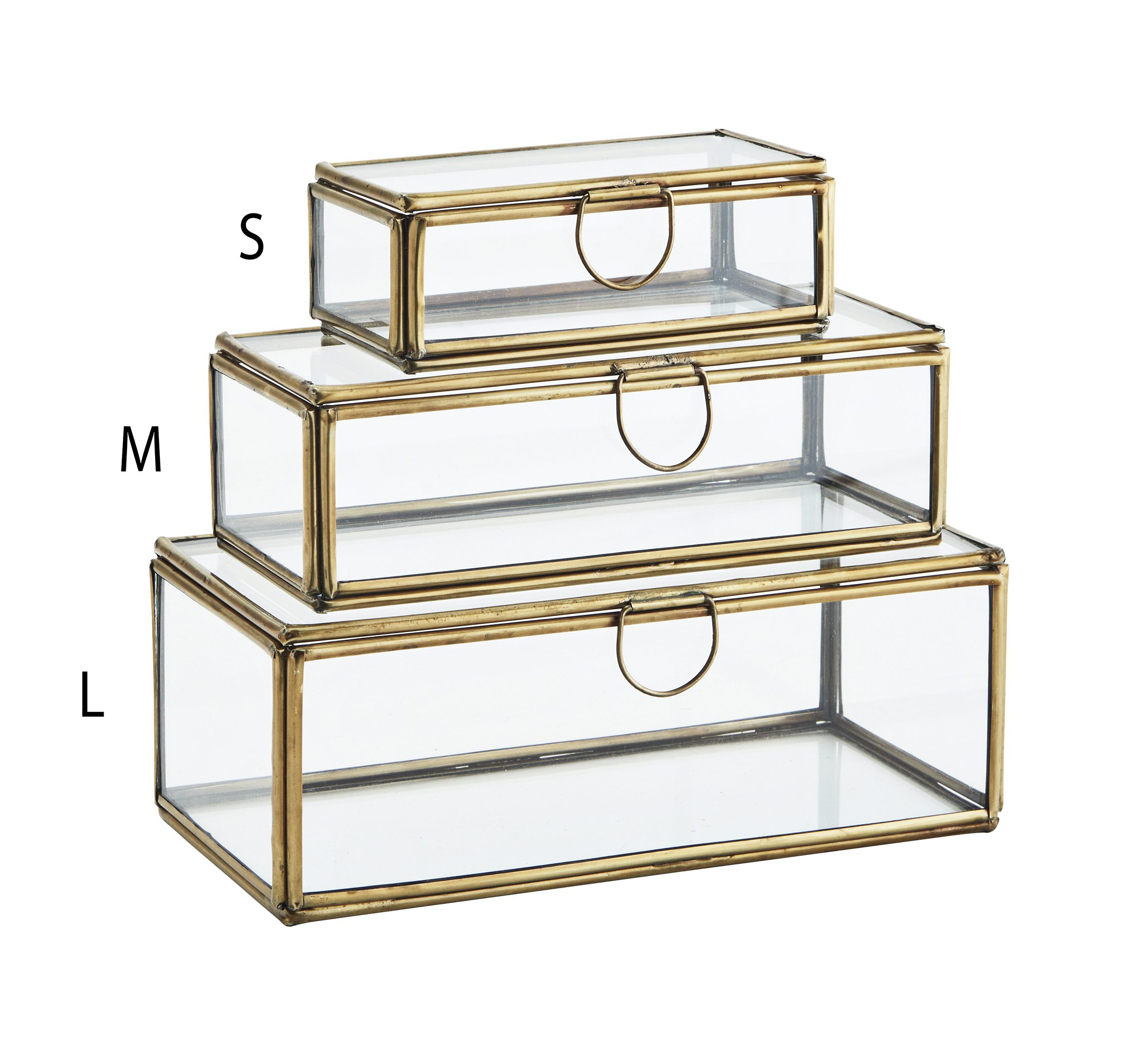 Jolie boîte en verre de la marque danoise Madam Stoltz. Cette boîte en verre est idéale pour ranger vos bijoux préférés dans la salle de bain ou autres petits trésors dans la chambre à coucher ou n’importe où dans votre intérieur. Vendue à l’unité: taille S (voir image 2).