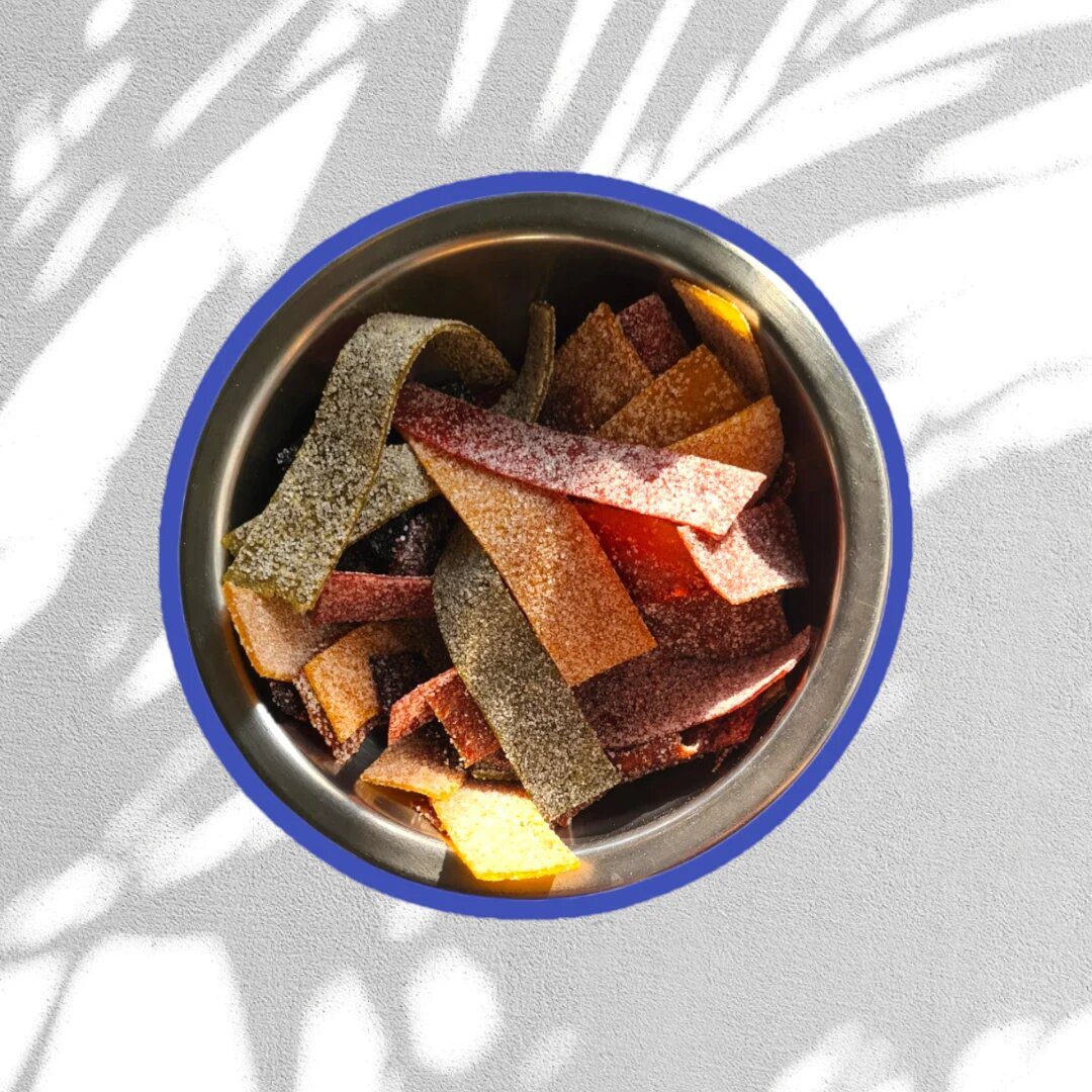 Les bonbons de L’AmiKette sont soigneusement confectionnés à Lausanne (Suisse) et composés de fruits frais de saison. L’idée est de se faire autant plaisir qu’avec un bonbon industriel, mais d’une façon plus saine avec de bons produits. Krystel, la créatrice, utilise un procédé par déshydratation à basse température pour la confection de ses « fruiandises », ce qui permet de conserver un maximum de bons nutriments présents dans les fruits frais. L’ajout de sucre acidulé qui enrobe le produit fini nous rappelle les langues de chats ou les lasagnes, le tout sans ingrédients chimiques ni gélatine ! Ce mini sachet contient 20gr de délicieux bonbons (vegan).