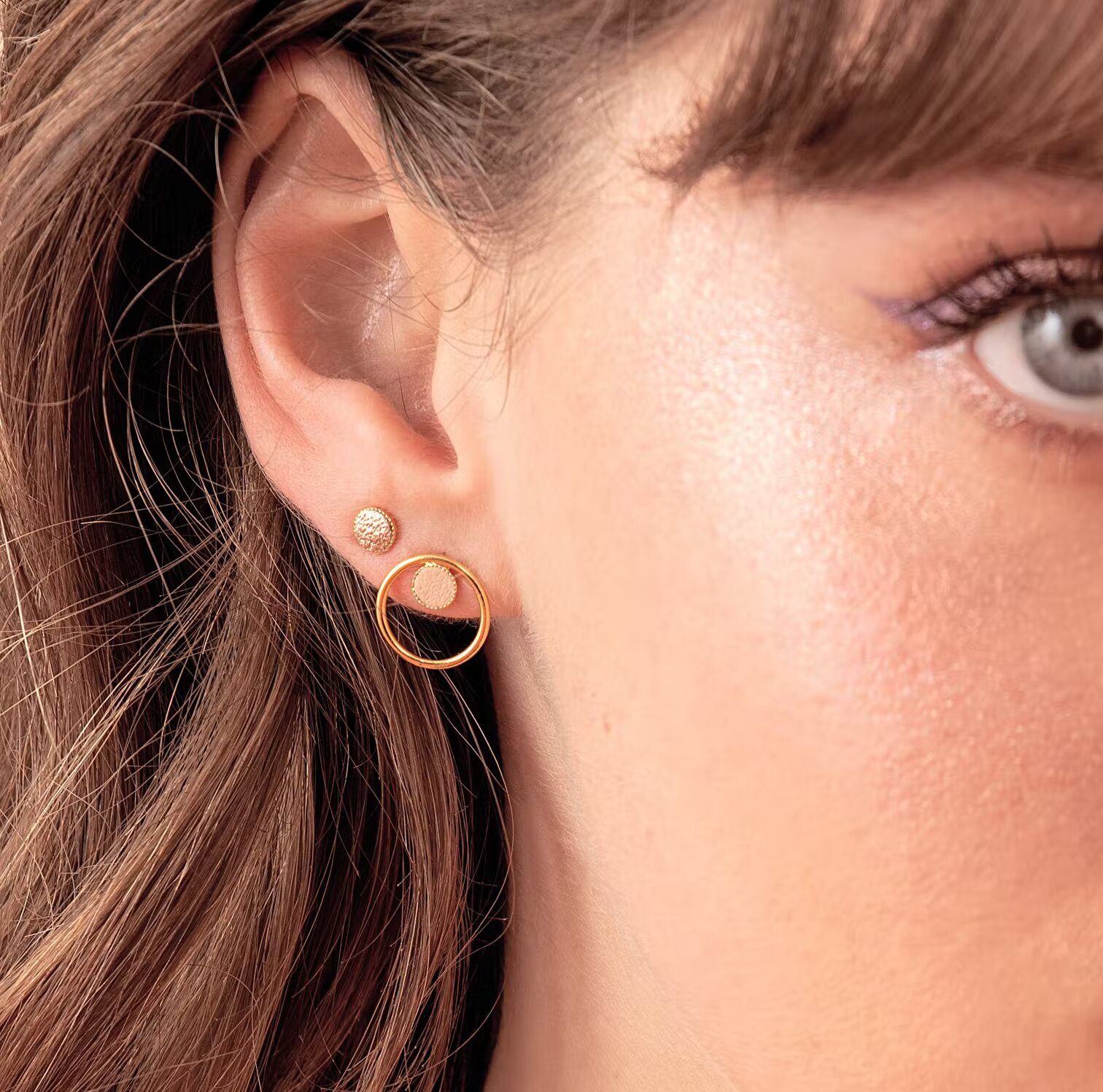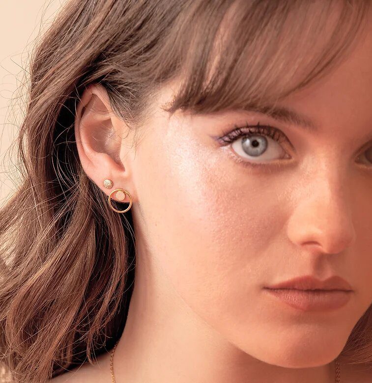 On aime l’univers de Fosseth et son style graphique tout en délicatesse, ultra douces et féminines ! Les puces d’oreilles « Nil » sont composées d’un cercle doré avec petits confettis de cuir d’agneau couleur vert sauge poudre incrusté délicatement. Un belle idée cadeau pour votre adorable maman, une copine qu’on adore ou tout simplement pour soi…