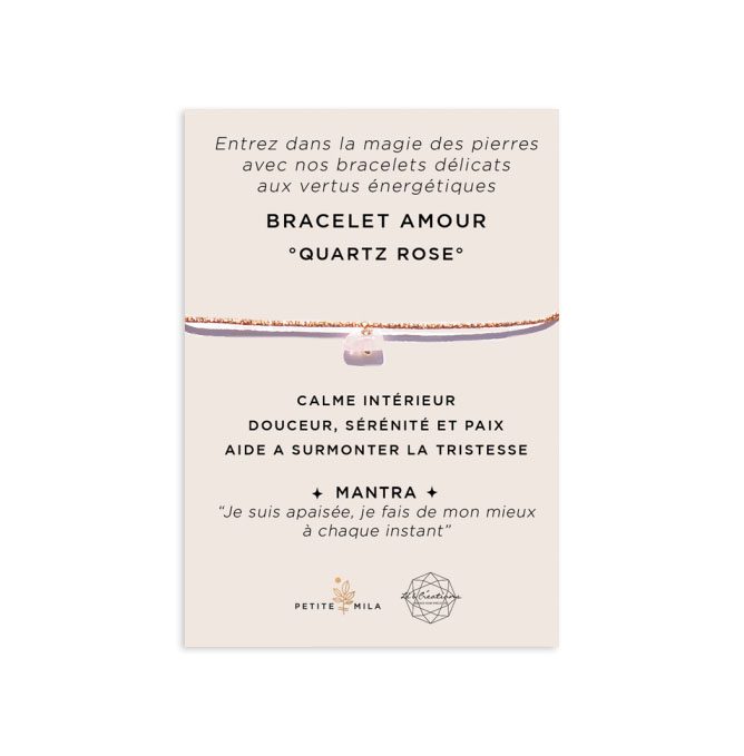 - Une carte illustrée mentionnant les propriétés énergétiques est jointe au bracelet