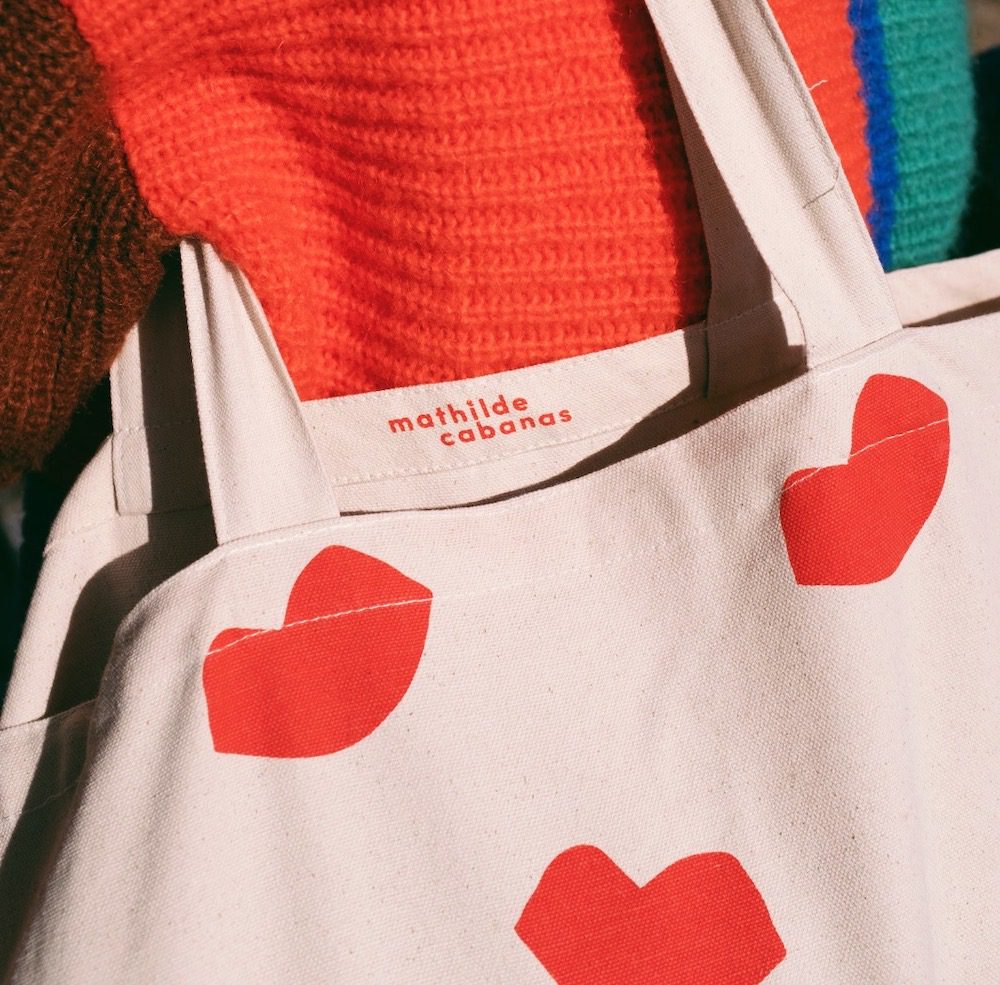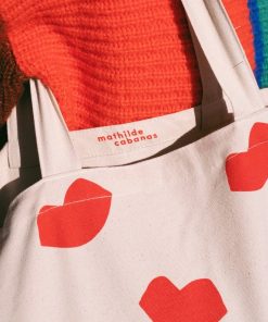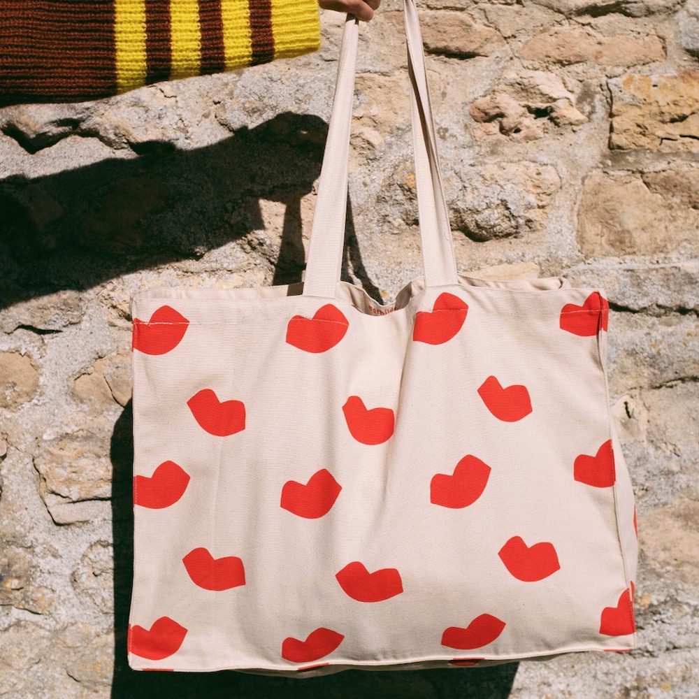 Sac bouches en coton 100% biologique par la jolie marque espiègle Mathilde Cabanas. Pour la plage, le boulot, le sport ou en virée shopping, ce très (trèèès) grand cabas peut contenir un format A4 ou un ordinateur portable et il vous donnera le sourire à coup sûr avec ses petites bouches bien rouges ! Coton bio épais 275g écru et anses longues de 30cm, lavage à la main uniquement.