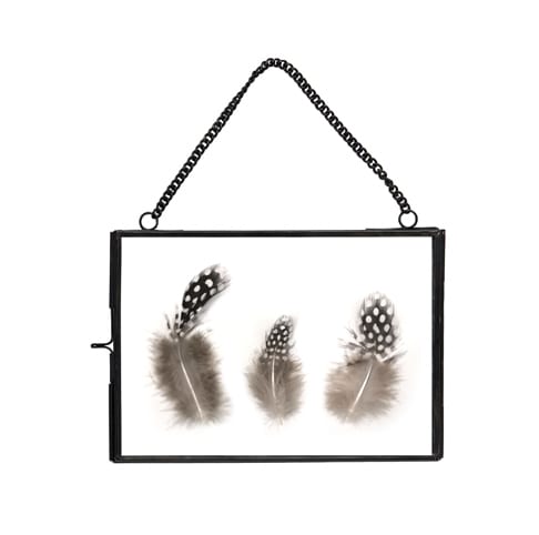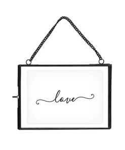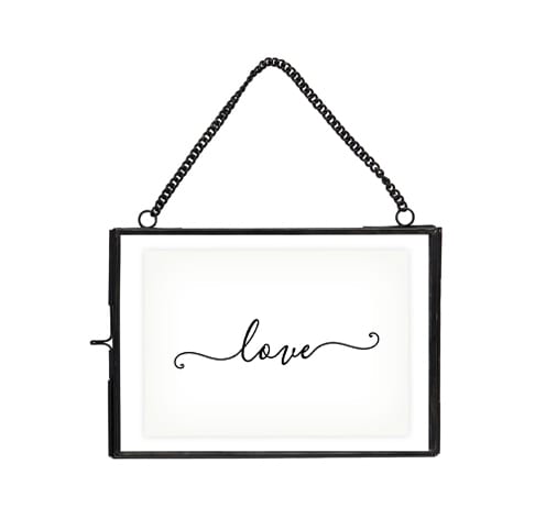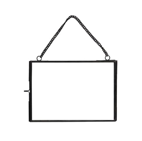 Inspiration vintage pour ce joli cadre en verre et laiton noir à accrocher au mur. Mettez en valeur votre photo préférée ou carte favorite dans ce bel objet déco à suspendre dans une chambre, un salon ou une entrée ! N’hésitez pas à jouer avec la transparence du verre en y insérant quelques éléments de poésie tels que des plumes, des fleurs séchées ou autres végétaux pour un joli herbier. Hauteur de la chaîne: 9cm.