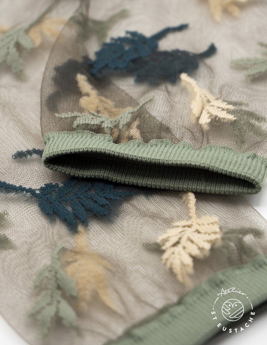 Osez les chaussettes originales et transparentes de la marque Atelier St Eustache. Idéal avec des baskets, des mocassins, des derbies ou encore des talons hauts pour un look décalé ! Ce modèle « Les Alpes » couleur vertes sont une retranscription poétique des motifs que la nature s’est appropriée, créant des formes semblables à des petites feuilles. Ces chaussettes arborent fièrement les couleurs de la chaîne Alpine, un camaïeu de vert et du beige… Un modèle plein de légèreté et de douceur qui complètera à merveille votre look quotidien jean clair et baskets blanches.