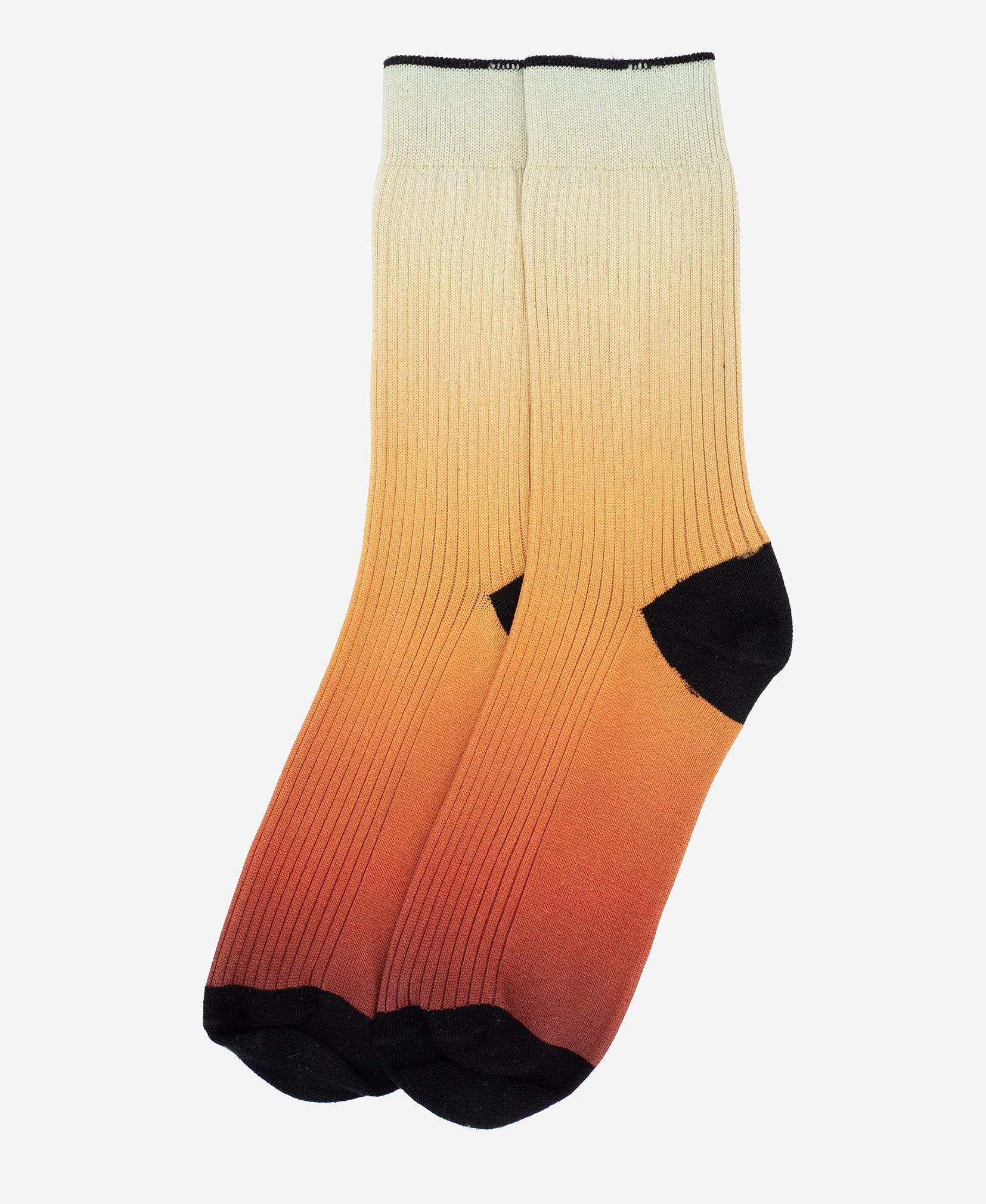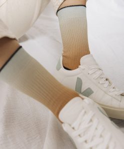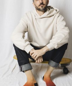 Osez les chaussettes originales de la marque Atelier St Eustache ! Découvrez les chaussettes côtelées Orange & Vert ultra douces de la collection « Panorama ». Un modèle mixte aux teintes fraîches inspiré des reflets marins. Avec un dégradé subtil de vert et orange, elles apportent couleur et confort à vos tenues. Leur bord-côte noir discret s’adapte à tous les styles. Pour un look moderne, associez-les à un jean brut et un haut crème ou vert d’eau.