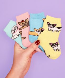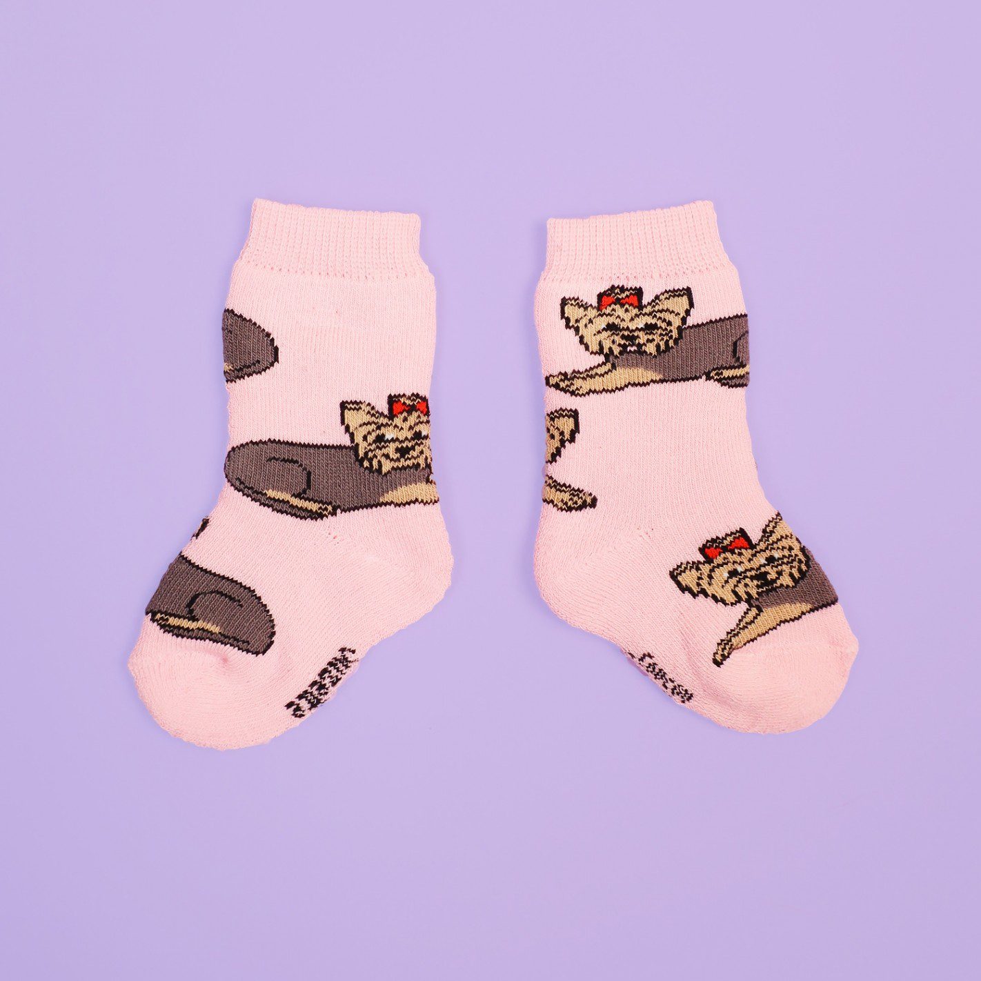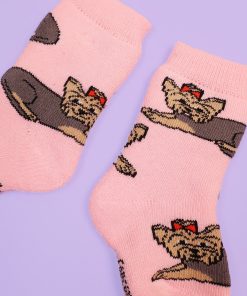 Quoi de plus mignon qu’une famille de petits Yorkshires aux pieds de son bébé ? Parfait pour lui assurer un look au top pendant les balades en poussette ! Avec ces chaussettes, votre enfant fera des jaloux à la crèche, c’est certain… Ces jolies chaussettes pour bébé/enfant fera le cadeau idéal si vous voulez annoncer quelque chose de très spécial à votre famille ou féliciter votre copine à sa Baby Shower. Chaussettes en coton douillet certifié Oeko-Tex et fabriquées en France. Taille: 9-12 mois.