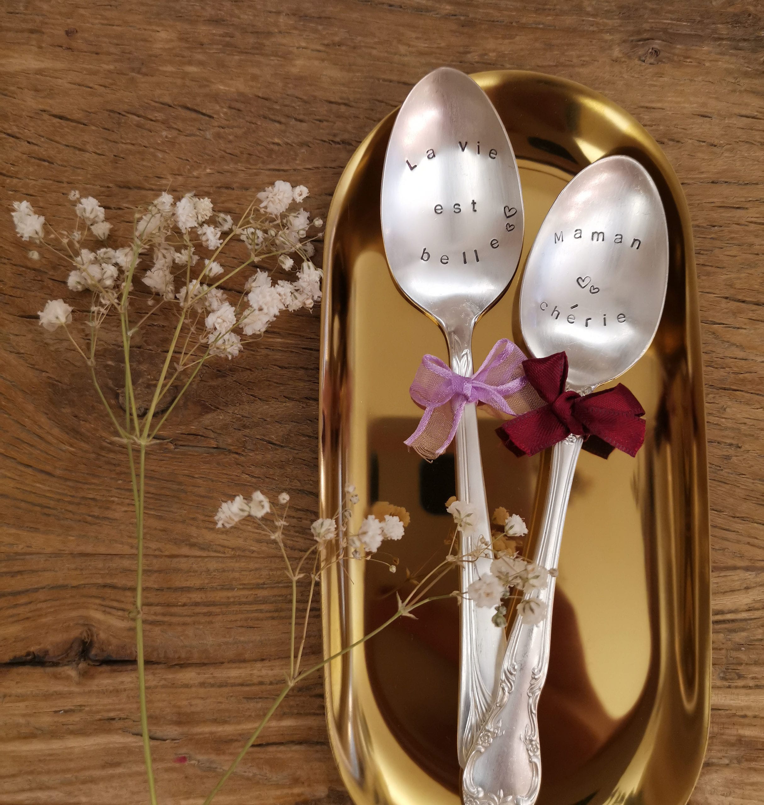 Quoi de mieux qu’une belle cuillère personnalisée comme cadeau original ? Le nom d’une personne, la date de naissance d’un bébé ou peut-être un petit surnom affectueux… Réfléchissez à votre texte et je reviendrais vers vous par e-mail pour la confirmation et la disposition du/des mot(s) sur la cuillère.
