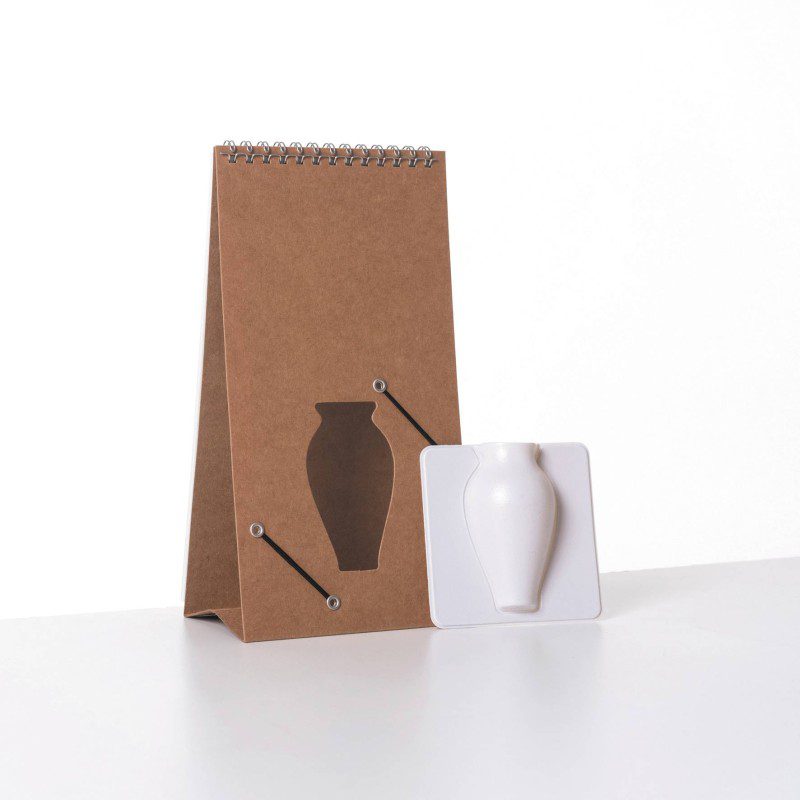 Flip vase est un vase associé à un bloc-notes imprimé avec de jolies illustrations ! Un bel objet déco qui vous permettra d’ajouter une touche de poésie et de verdure dans votre intérieur… Changer l’image (sept en tout) au gré de vos humeurs et de vos envies et déposez une petite fleur en son centre. Derrière le bloc-note se cache un petit contenant en plastique (vase) qui peut être rempli d’eau pour les fleurs fraiches ! Fleurs non incluses.