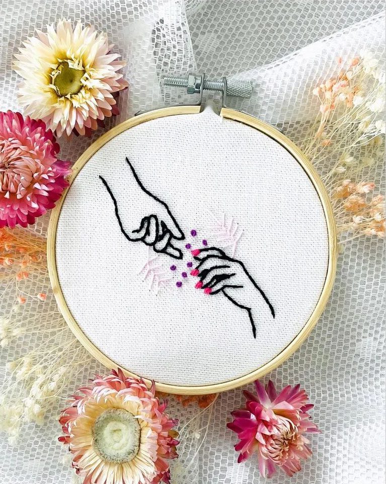 Ce kit broderie « Là pour toi » évoque les sentiments tels que l’amour ou l’amitié, qui montrent la confiance entre deux êtres et leur soutien mutuel face aux aléas de la vie. Ces deux mains tendues l’une vers l’autre, représentent bien cette réciprocité. Leur mouvement est accompagné de jolis détails que vous adorerez broder.