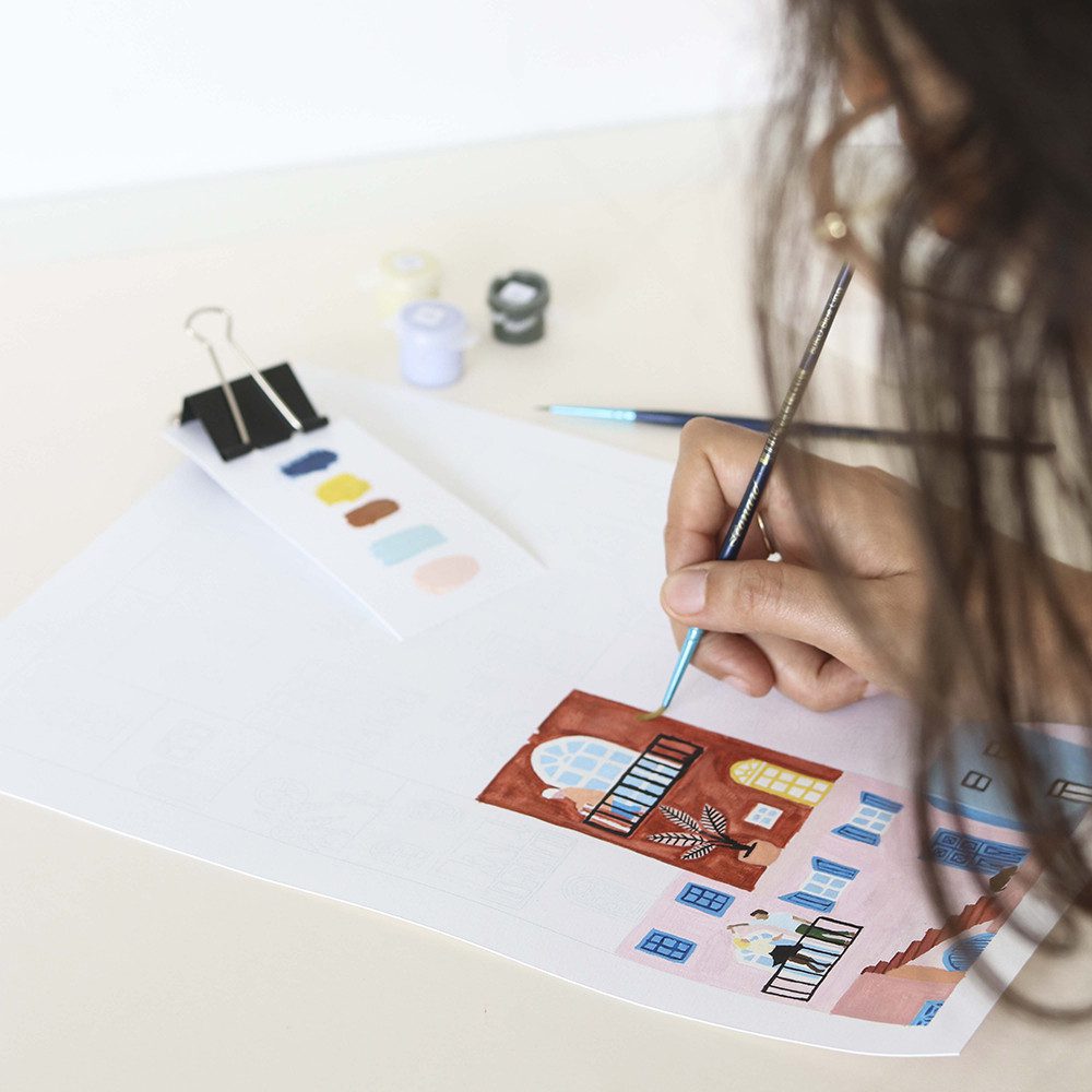 - Une illustration à peindre format 24,5 x 32,5 cm avec papier 430g