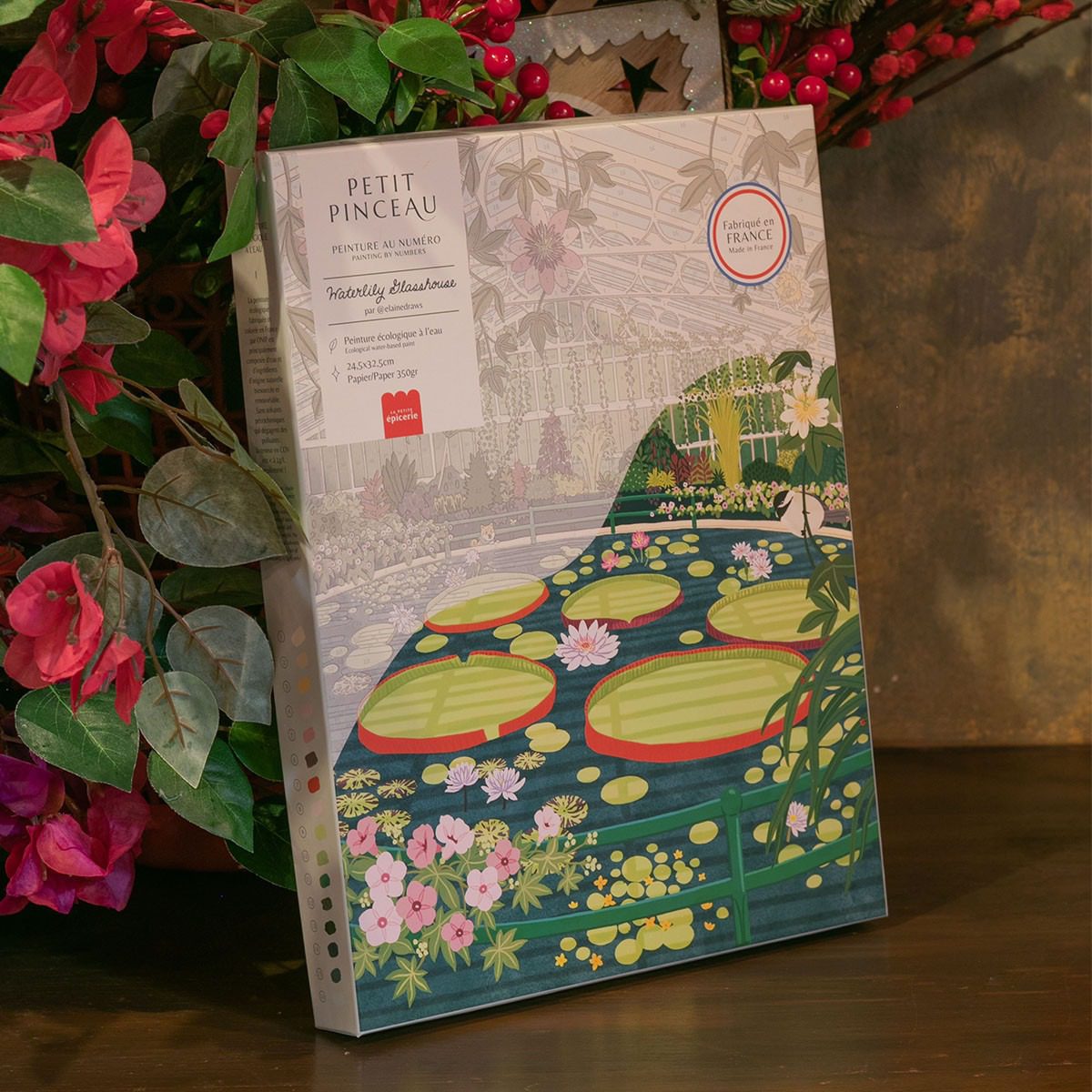 La Petite Épicerie a imaginé spécialement pour vous une jolie série de peinture au numéro, Petit Pinceau. Elle vous propose ce kit DIY peinture « Waterlily Glasshouse », conçue par l’illustratrice Elaine Lee. Parfait pour un moment de détente ! Et une fois la peinture terminée, vous pourrez l’encadrer et l’afficher fièrement dans votre intérieur pour une touche « handmade » ! Le coffret est Made in France. Il contient :