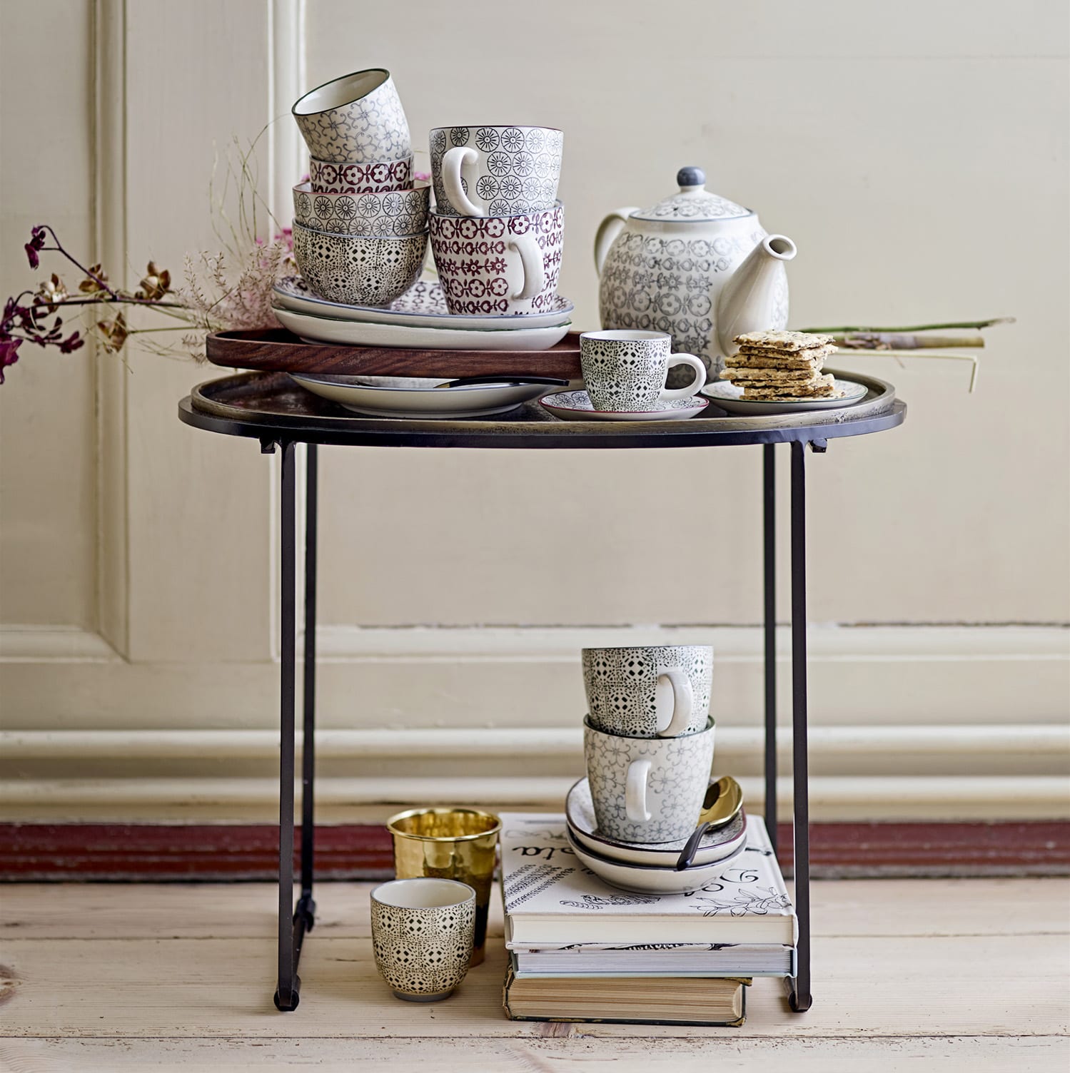 On craque pour cette collection signée Bloomingville du nom de Karine ! Une vaisselle aux motifs baroques dans des tons plutôt neutres: bordeau, vert foncé et gris. Associez-les au reste de la collection qui décline plats, bols et mini mugs. Cette mini tasse accueillera volontiers votre thé, votre café ou même une jolie petite plante.