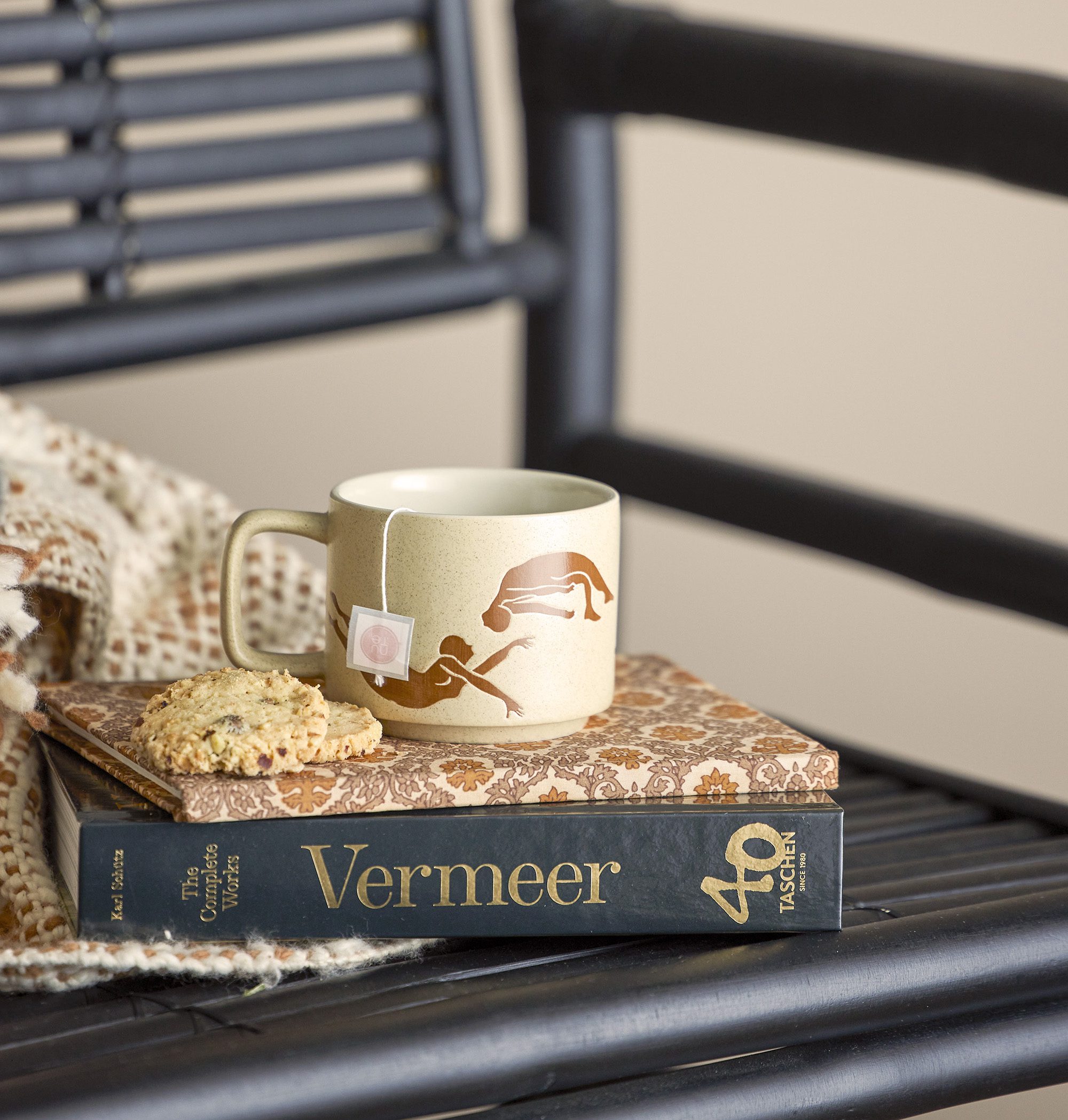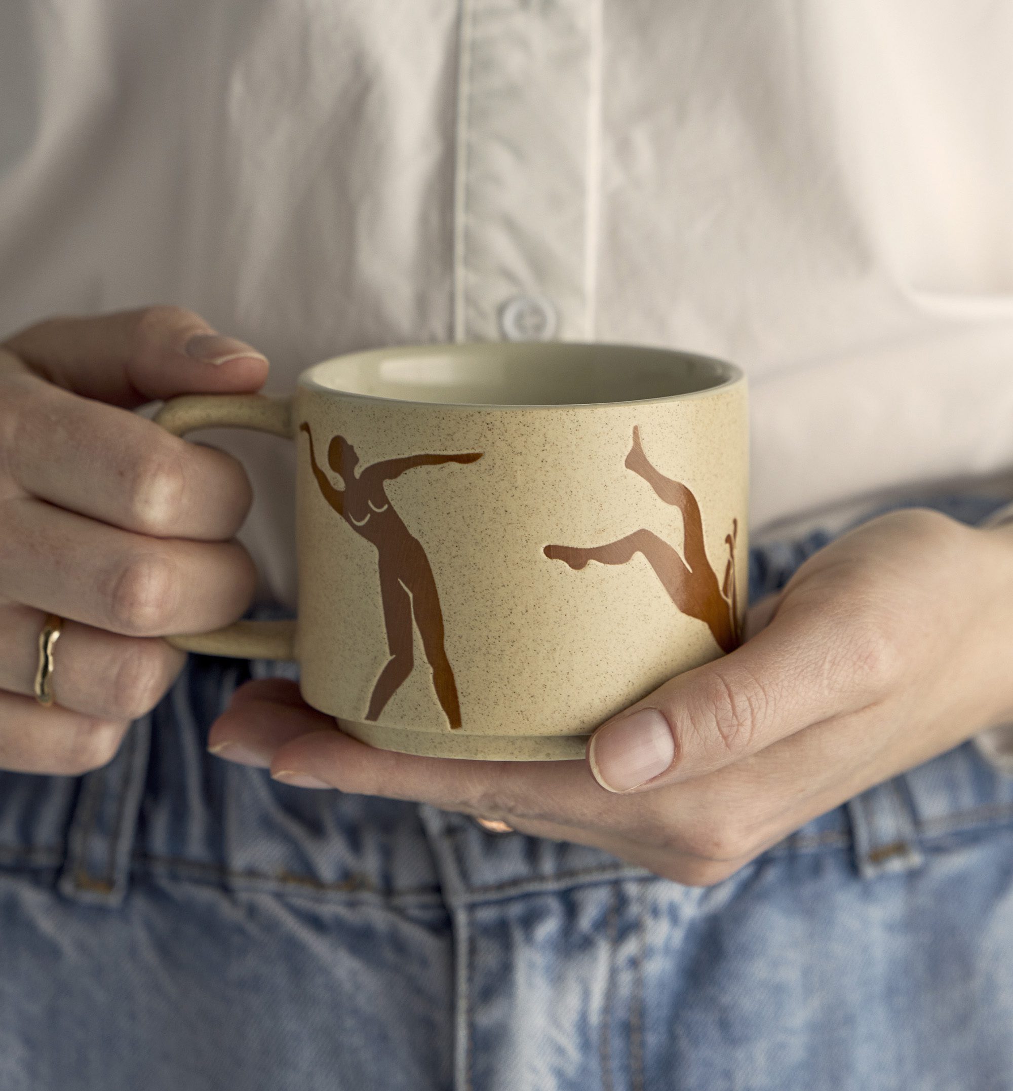 On craque sur ce beau mug en céramique Harlow de la marque danoise Bloomingville ! Avec ses dessins de corps qui semblent flotter et danser sur l’émail, ce mug sera ravi de devenir votre nouveau compagnon lors de votre pause thé ou café. Le petit plus ? Cette tasse s’empilera parfaitement avec sa copine d’un motif légèrement différent par ici.
