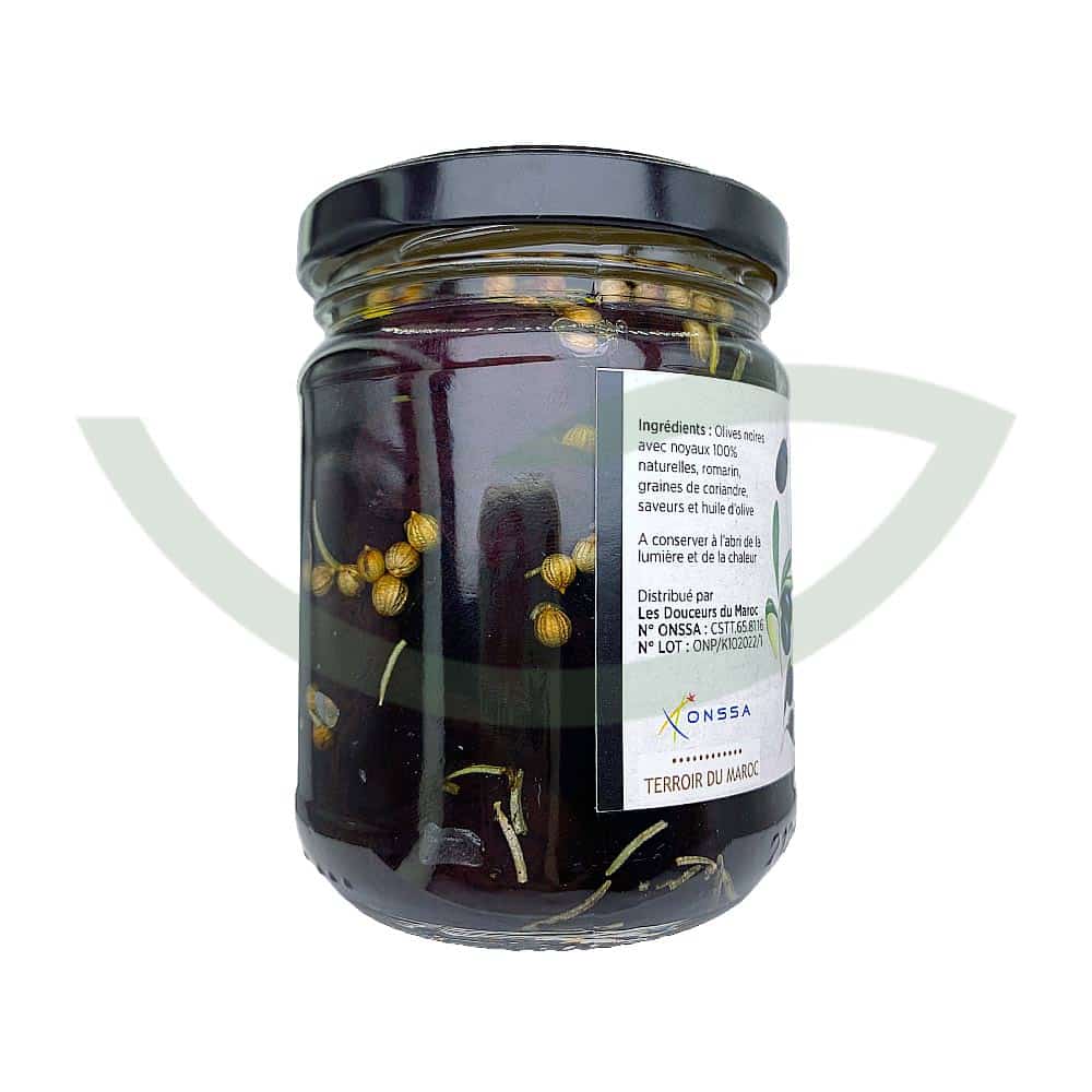 Caractéristiques des Olives noires aux plantes aromatiques 180g de Les douceurs du Maroc