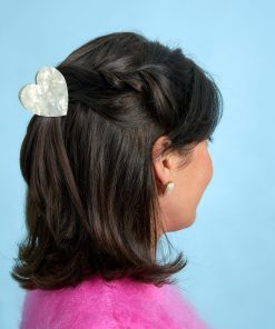 On connaissait déjà l’iconique pince à cheveux coeur couleur rouge et rose, la voilà de retour dans une nouvelle version blanc nacré très chic ! Rien de plus efficace qu’un joli cœur pour célébrer l’amour au quotidien avec des coiffures à la fois poétiques et modernes. Un parfait petit cadeau pour sa moitié le jour de la Saint-Valentin (ou à s’auto-offrir). Fabriquée à partir d’acetate de cellulose recyclée & biodégradable (Eco-Friendly).