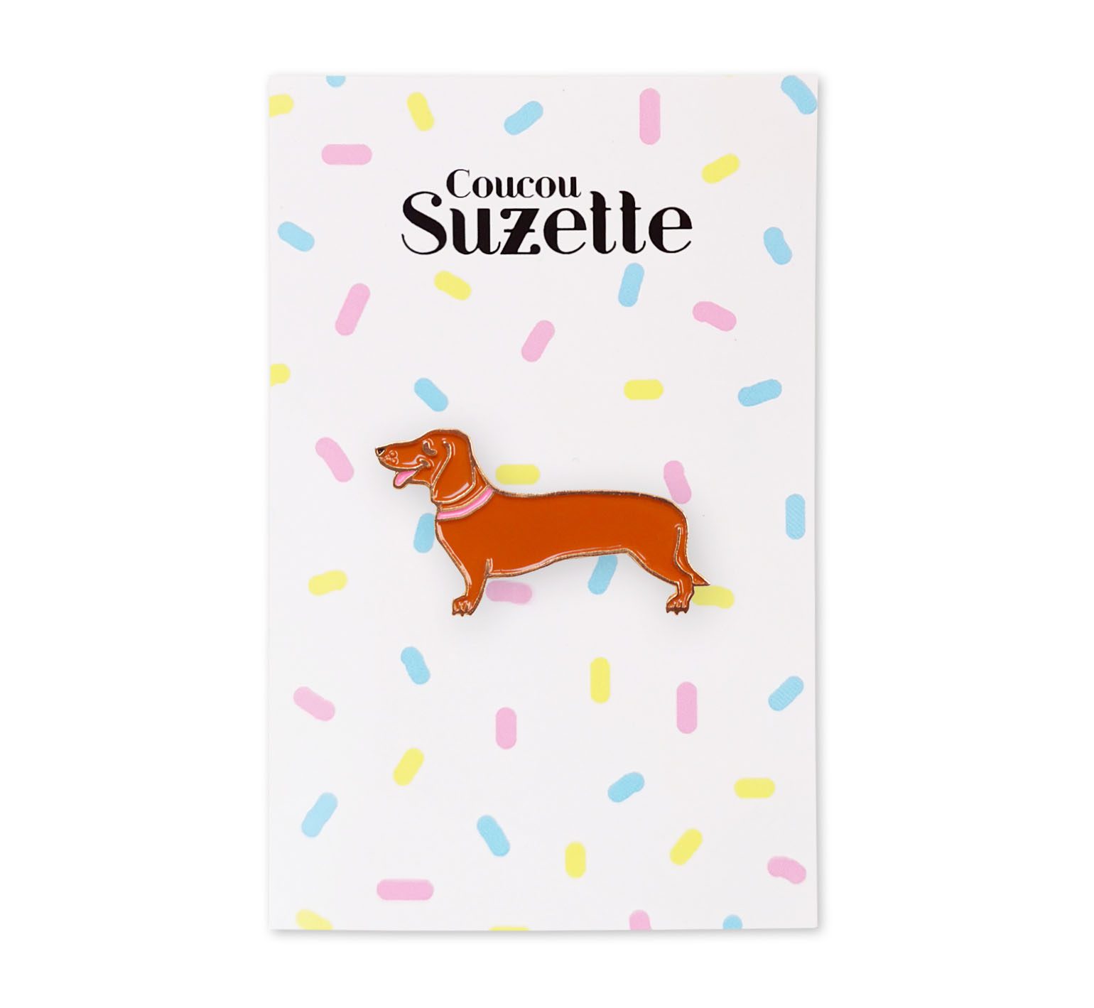 On craque pour l’univers pop et décalé de la jolie marque colorée Coucou Suzette! Ah les Teckels, cette fameuse race de chiens longs et courts sur pattes, semblables à de petites saucisses. On adore! Il s’acoquinera gaiement avec tous ses copains toutous sur notre veste en jean (pin’s carlin, pin’s corgi, pin’s bouvier). Exhibez fièrement ce joli pin’s « Teckel » sur un pull, une veste en jean, un manteau, un tote bag… Parfait comme idée cadeau: c’est le petit plus, le cadeau original qui fera sourire à coup sûr! Fabriqué en métal émaillé et attache de type « papillon » au dos.