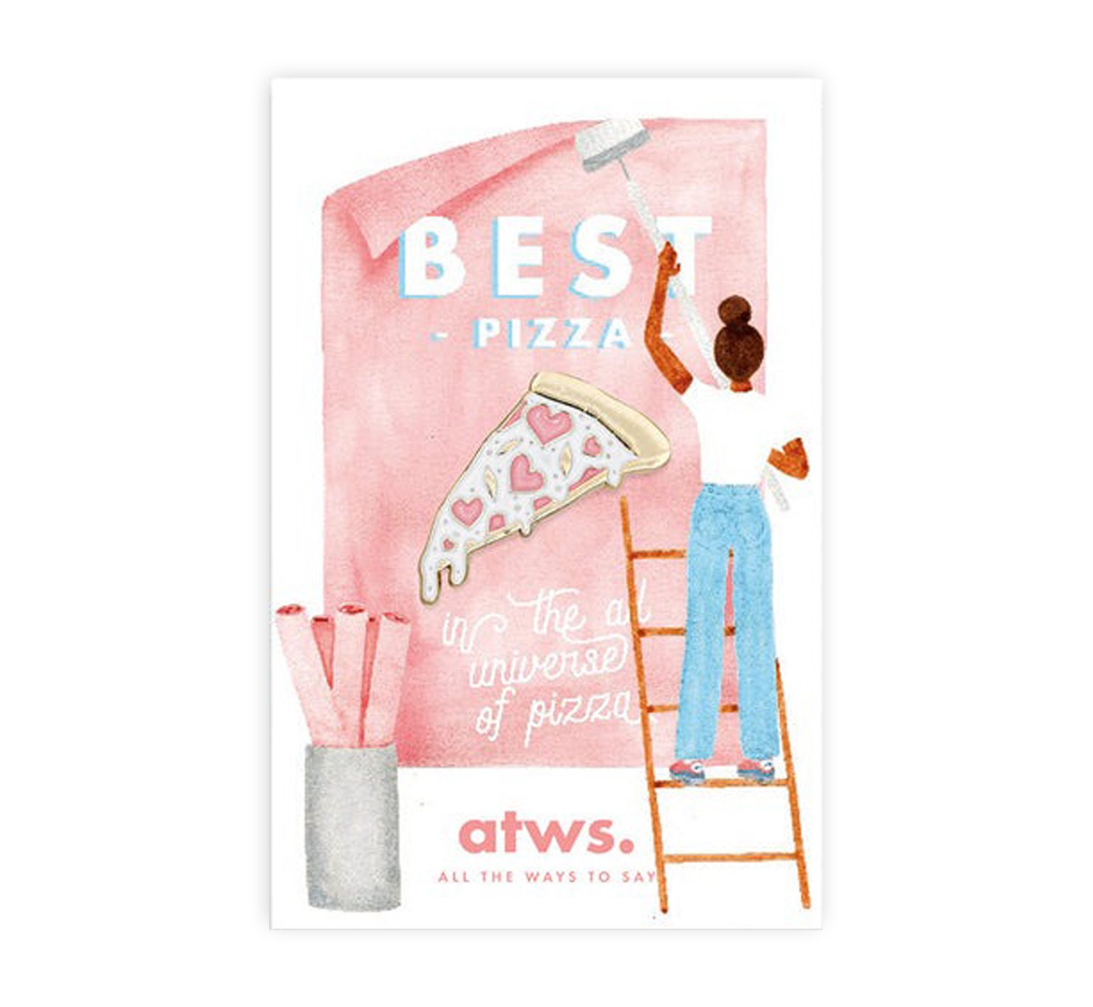 On craque pour le bel univers de la marque française All the Ways to Say ! Ce pin’s « Pizza » est un accessoire rigolo et original. Il habille manteaux, pulls, veste en jean, sacs… À collectionner et arborer sans modération. Ce petit pin’s est épinglé sur une carte illustrée qui en fait une jolie idée de cadeau pour un proche. Attache en métal de type « papillon » au dos.