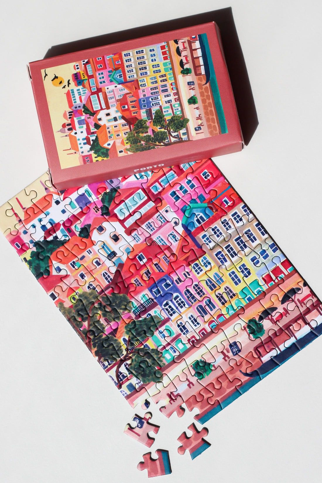 On craque complètement pour les magnifiques puzzles de la marque Piecely qui travaille avec des artistes talentueux partout dans le monde ! Laissez ce mini puzzle de 99 pièces « Porto » vous emmener en voyage dans l’une des plus belles villes du Portugal. Laissez-vous séduire par l’ambiance animée de cette ville côtière colorée. Les puzzles reviennent en force ces derniers temps: c’est une activité reposante qui nous permet de se couper du monde le temps d’un instant. Après l’avoir fini, libre à vous de le défaire, le prêter ou mieux encore, l’encadrer. Fabriqué de manière responsable en EU (Turquie) et en papier recyclé (packaging sans plastique).