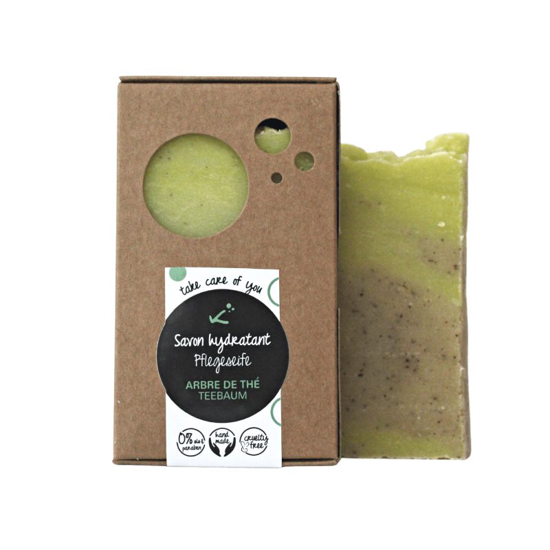 Le « tea tree » ou arbre de thé est reconnu pour ses vertus cicatrisantes et apaisantes. Ce savon solide est parfait pour les peaux à tendance acnéiques, avec des rougeurs ou pour une utilisation après rasage. À utiliser pour les mains, le corps ou le visage pour une peau saine et hydratée. En nettoyant ou en masque pour le visage l’arbre de thé permet de prévenir l’apparition d’imperfections sur la peau et régule la production de sébum. Savon de 100g.