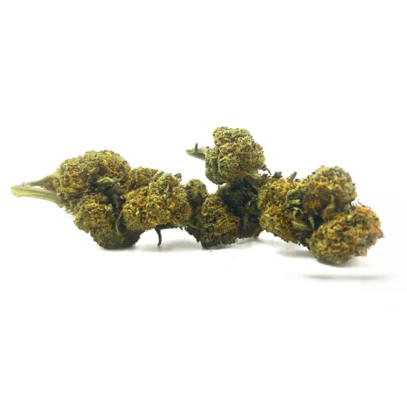 Aspect visuel séduisant : fleurs compactes et denses, aux nuances vert clair, avec des reflets légèrement orangés provenant de pistils abondants et riches en résine.