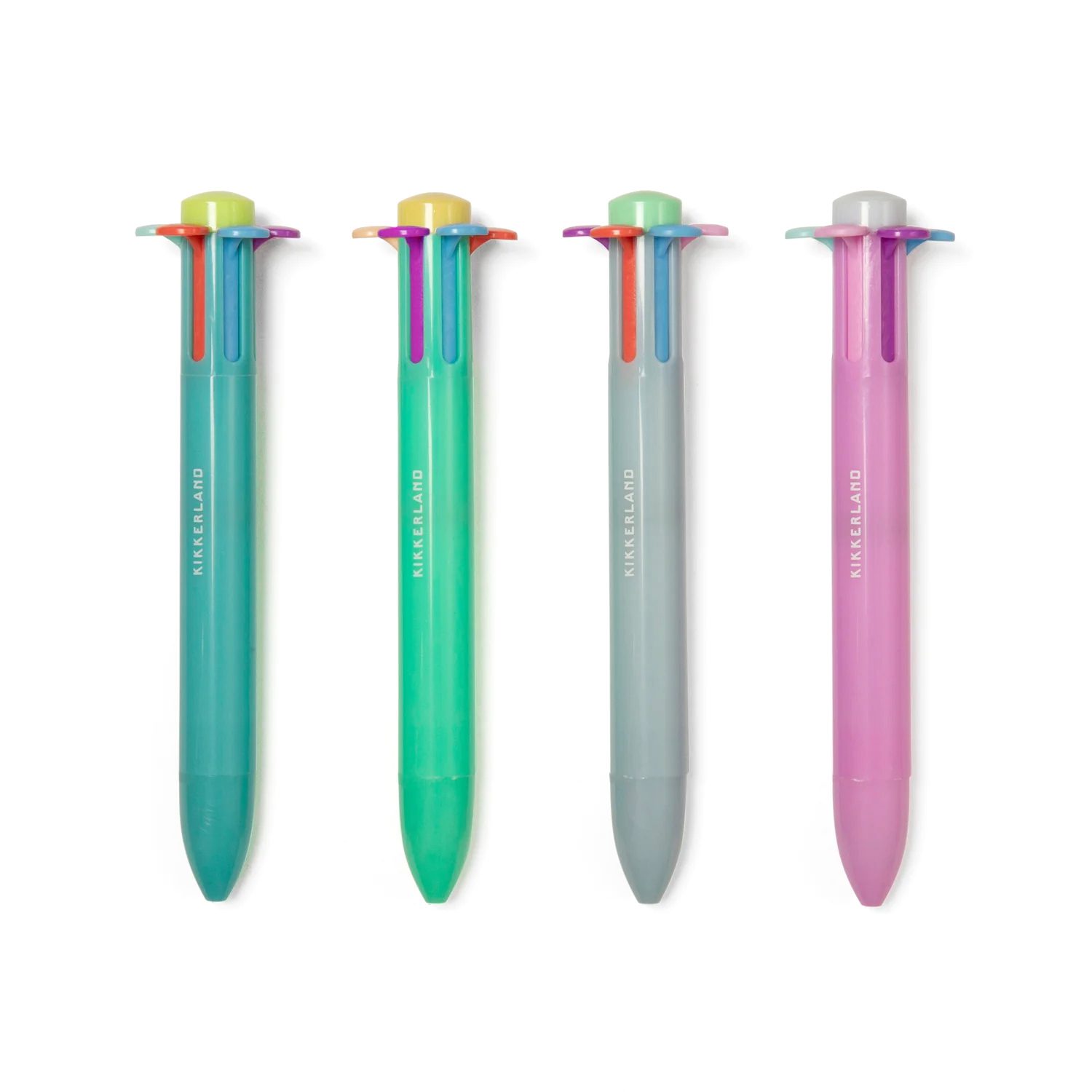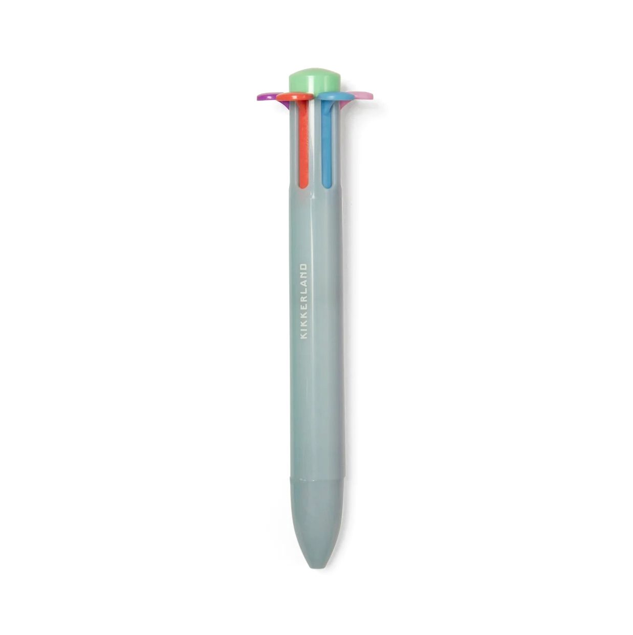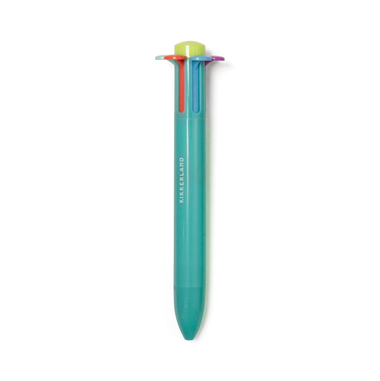 La marque farfelue Kikkerland nous propose ici un chouette stylo fleur multicolor ! Cette adorable fleur sera ravie de vous aider à mettre vos idées à plat avec ses 6 couleurs différentes: Violet, Rose, Vert, Orange, Rouge et Bleu. Il suffit d’appuyer sur le pétale de la couleur voulue pour que la magie opère. Un accessoire pour le bureau qui vous fera sourire à coup sûr ! Idéal comme idée cadeau. Vendu à l’unité.