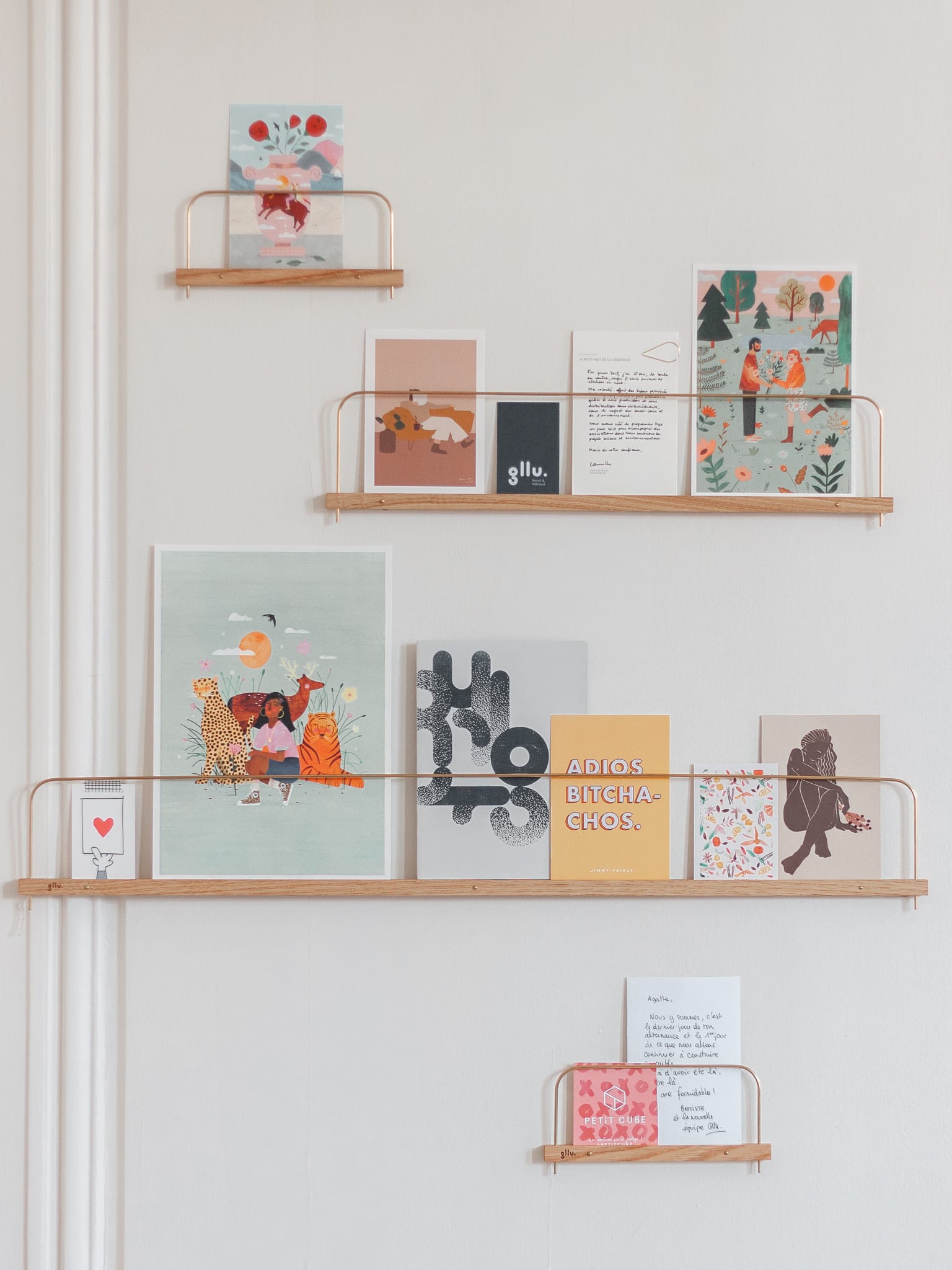Avec cette étagère Super-Poses, vous pourrez exposer vos plus belles photos, illustrations et autres souvenirs. Changez votre décoration facilement plutôt que de la figer dans un cadre ! Bien pensé, la hauteur de la barre de laiton maintient différents formats de photos ou illustrations et la fixation (grâce à des clous en laiton fournis) est simplifiée. Pour vos souvenirs, pour vos photos, pour vos cartes postales, pour vos polas… Bref, pour vos superbes poses !