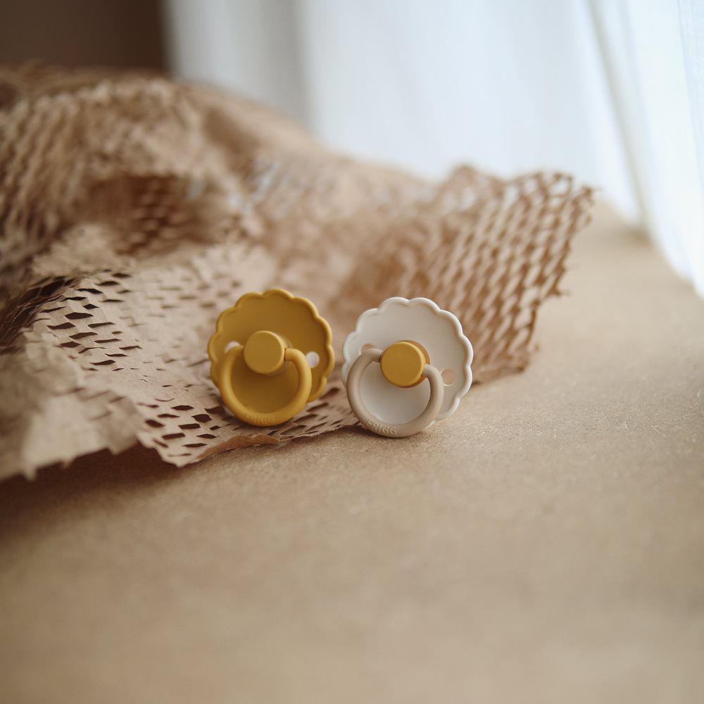 Comment ne pas craquer sur ces adorables tétines Pâquerette de la marque danoise Frigg? Avec ces bords festonnés imitant cette jolie fleur: la pâquerette (ou marguerite) symbolise la pureté et l’innocence, c’est l’inspiration parfaite derrière ces tétines qui sauront réconforter les tout-petits… C’est également la fleur nationale au Danemark, pays où sont entièrement pensées et fabriquées ces belles lolettes. Les marguerites embellissent les champs d’herbe partout dans ce magnifique pays en été et sont en fait la fleur préférée de leur reine Margrethe. Curieusement, « Daisy » est aussi son surnom.