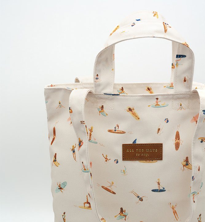 On craque pour le bel univers de la marque française All the Ways to Say ! Ce tote bag « Paddle Girl » vous aidera à transporter précieusement vos affaires lors de vos courses au supermarché, une escapade à la plage ou simplement au quotidien pour aller travailler ! Très pratique, il possède deux paires de anses de longueurs différentes: anses longues et anses courtes. Vous pouvez donc décider de le porter sur l’épaule ou dans la main. Fabriqué au Portugal, tissu à partir de polyester 100% recyclé et empiècements en cuir vegan.