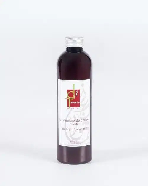 Vinaigre de Cerise d’Imlil est un produit 100% naturel sans additifs ni conservateurs. Le vinaigre de cerise de la région d’Imlil (atlas marocain) est une merveille du terroir Marocain, il est développé lentement sans dépasser les 40° afin de préserver les innombrables vertus du fruit. Vinaigre de Cerise d’Imlil Améliore le transit intestinal, Apaise les inflammations des voies urinaires, Facilite l’évacuation de l’urine, de l’eau et des toxines, Possède des effets antioxydants et anti inflammatoires sur le foie et l’estomac, Aide à perdre du poids, Prévient l’apparition de cancers, Inhibe l’oxydation du mauvais cholestérol LDl, Elimine les calculs urinaires et finalement facilite un bon sommeil.. L’arôme légèrement plus sucrée que les autres fruits rouges, ainsi un goût légèrement acidulé en fonction des variétés de la cerise est bien présent, utilisé en assaisonnement ce vinaigre 100% naturel accompagnera vos délicieuses salades. Il peut également être utilisé pour réaliser un déglaçage parfait. Ayant des propriétés diurétiques et dépuratives, le vinaigre de cerise parmi ses nombreux autres bienfaits pour l’organisme, une consommation régulière de cerises permet également d’améliorer le sommeil, de réduire le taux de mauvais cholestérol, de soulager l’arthrose, d’améliorer la santé intestinale, ou même de diminuer les risques de crise de goutte.