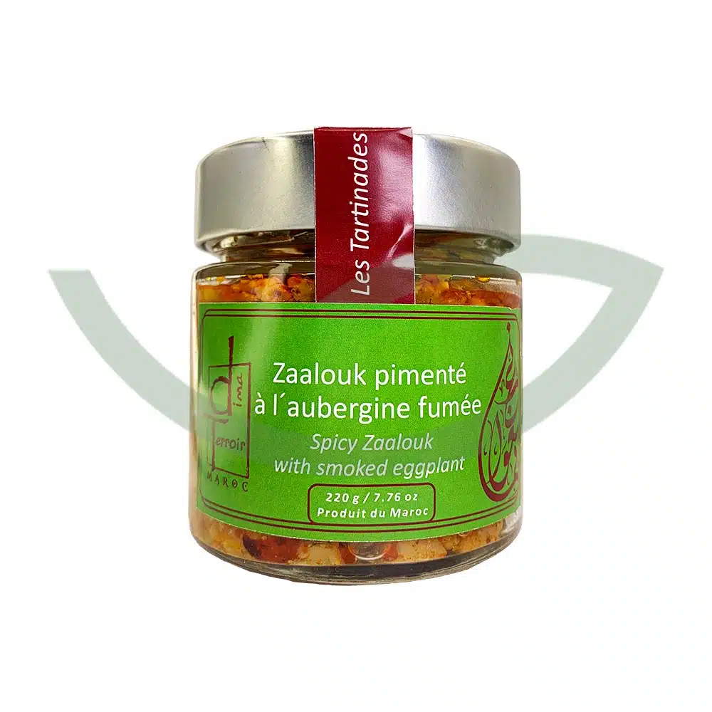 Zaalouk Pimentée est un produit 100% naturel sans additifs ni conservateurs. Zaalouk Pimentée une recette purement marocaine à découvrir. Un savoureux mélange à tartiner, subtil et équilibré, idéal pour la réalisation des toasts de l’apéritif et les mises en bouche. Zaalouk Pimentée est à base d’aubergine qui est très bénéfique pour le système cardiovasculaires, ainsi à des Propriétés anti-inflammatoires, Stimule le système immunitaire, Contient des antioxydants qui combattent le cancer, Favorise la santé des os et lutte contre l’ostéoporose, Améliore la digestion et Aide à contrôler la tension artérielle.