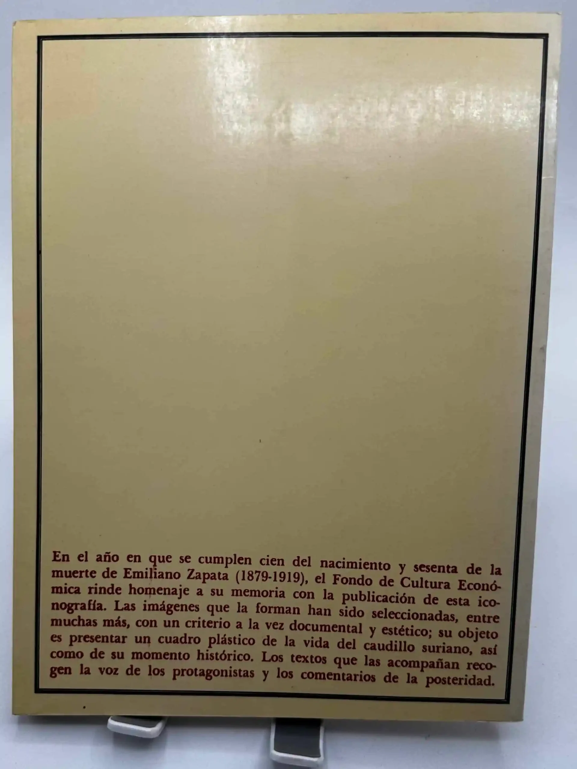 En el año en que se cumplen cien del nacimiento y sesenta de la muerte de Emiliano Zapata (1879-1919), el Fondo de Cultura Económica rinde homenaje a su memoria con la publicación de esta ico-nografía. Las imágenes que la forman han sido seleccionadas, entre muchas más, con un criterio a la vez documental y estético; su objeto es presentar un cuadro plástico de la vida del caudillo suriano, así como de su momento histórico. Los textos que las acompañan recogen la voz de los protagonistas y los comentarios de la posteridad.