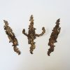 2 anciens abat-jour vintage en papier de couleur vert émeraude décorés de bandes dorées.