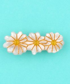 Il m’aime… Un peu… Beaucoup… On s’en fout ! Vous n’avez besoin de personne pour être validée (surtout si vous portez cette ravissante barrette à cheveux fleurie). Trois ravissantes petites pâquerettes blanches et jaunes, parfaites pour célébrer le retour du soleil ! Youpi ! Fabriquée à partir d’acetate de cellulose recyclée & biodégradable (Eco-Friendly).