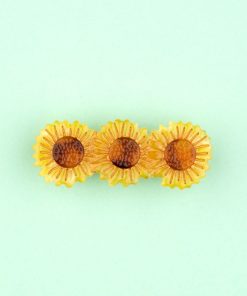 Trois petits tournesols qui ne demandent qu’à s’agripper en haut de nos chignons pour profiter au mieux du soleil ! On raffole de ces beaux pétales jaunes et de leurs liserets dorés qui scintillent dans nos crinières. Une barrette à cheveux fleur originale qui se clipse partout, même sur les vêtements. Fabriquée à partir d’acetate de cellulose recyclée & biodégradable (Eco-Friendly).