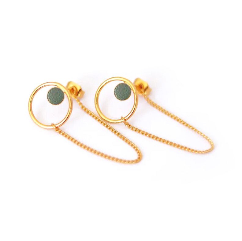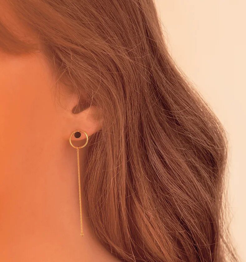 On aime l’univers de Fosseth et son style graphique tout en délicatesse, ultra douces et féminines ! Les puces d’oreilles « Nil » avec chaînettes sont composées d’un cercle doré avec petits confettis de cuir d’agneau incrusté délicatement. On adore le côté original de sa petite chaînette qui se fixe derrière le fermoir pour pendre délicatement de chaque côté de votre oreille. Vous pouvez également choisir de laisser la chaînette pendre complètement: les deux façons de porter ces boucles d’oreilles sont possible! Un belle idée cadeau pour votre adorable maman, une copine qu’on adore ou tout simplement pour soi…
