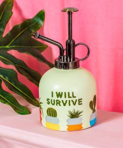 On craque sur ce joli brumisateur pour plante ! Dans un esprit fun et décalé avec son jeu de mot « I wet my plants » d’un côté et « I will survive » de l’autre, il sera ravi d’hydrater vos plantes grasses et cactus dans votre intérieur sans les noyer. Très pratique est indispensable pour tous les plant lovers ! Contenant en céramique et mécanisme en plastique.