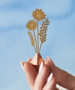 Plus c’est petit, plus c’est mignon ! On craque complètement sur cet adorable et mini bouquet « Cosmos » 3D en métal. L’avantage est qu’il durera éternellement et sera parfait comme petite déco sur un bureau ou une étagère. Emballés à plat, ce mini bouquet (avec son vase à assembler) se glisse facilement dans une carte pour l’envoyer directement à un proche. Bouquet doré et vase cuivré.