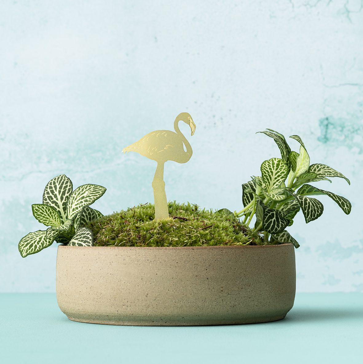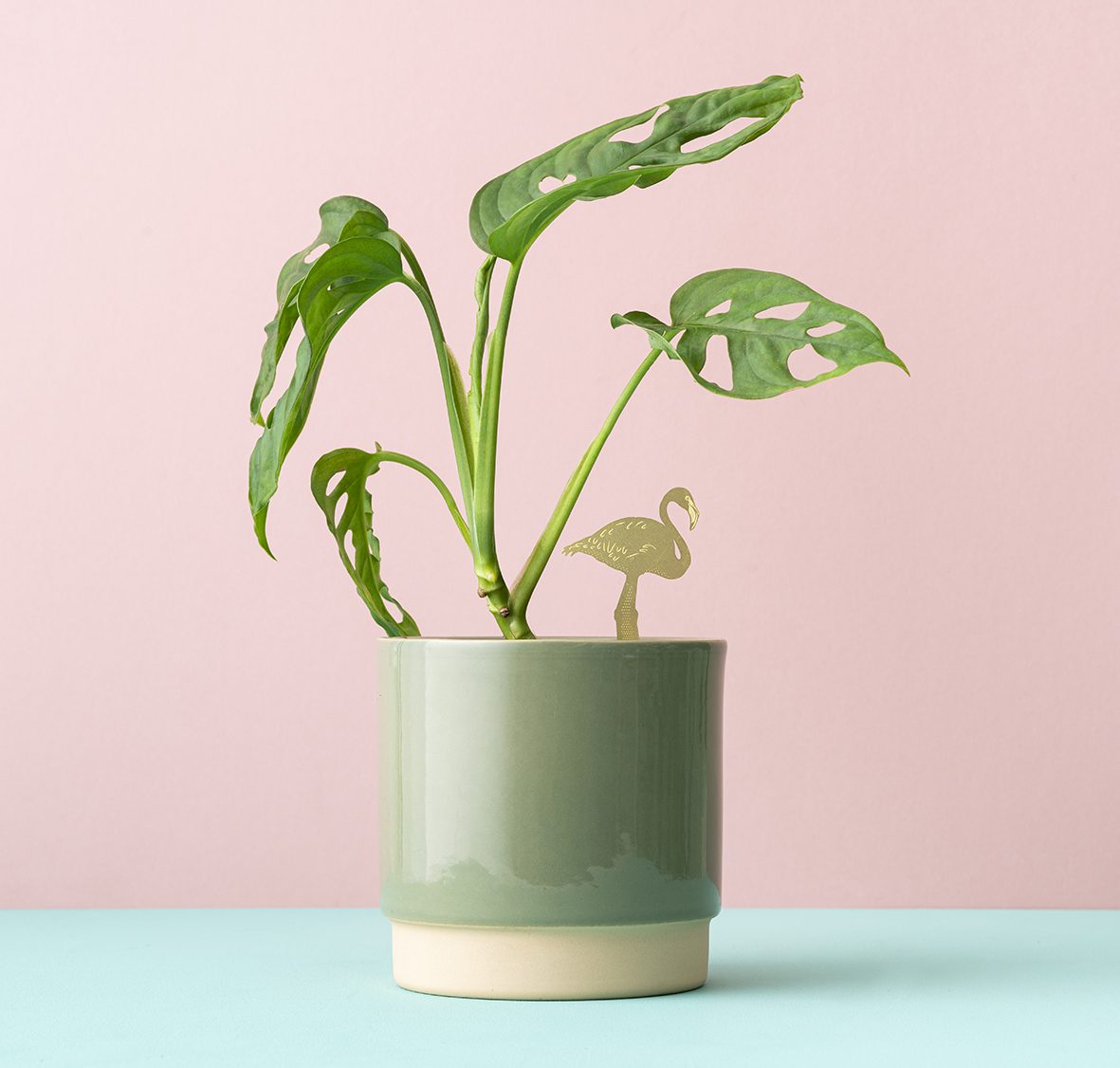 On craque complètement sur ces jolis accessoires pour plante ! Un petit objet décoratif très original et discret, qui fera à coup sûr son petit effet lorsque vos yeux et ceux de vos invités se poseront dessus… Ce flamant rose doré sera ravi de veiller sur votre plante préférée dans votre maison. Très simple à accrocher : il suffit de planter l’animal dans la terre de votre plante favorite.