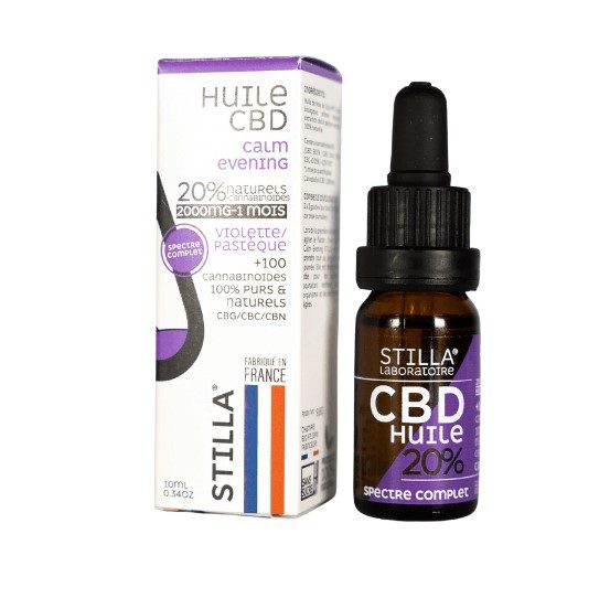 L’huile CBD 20% Calm/Evening 2000mg de chez Stilla en spectre complet vous apportera un effet agréable de décompression.