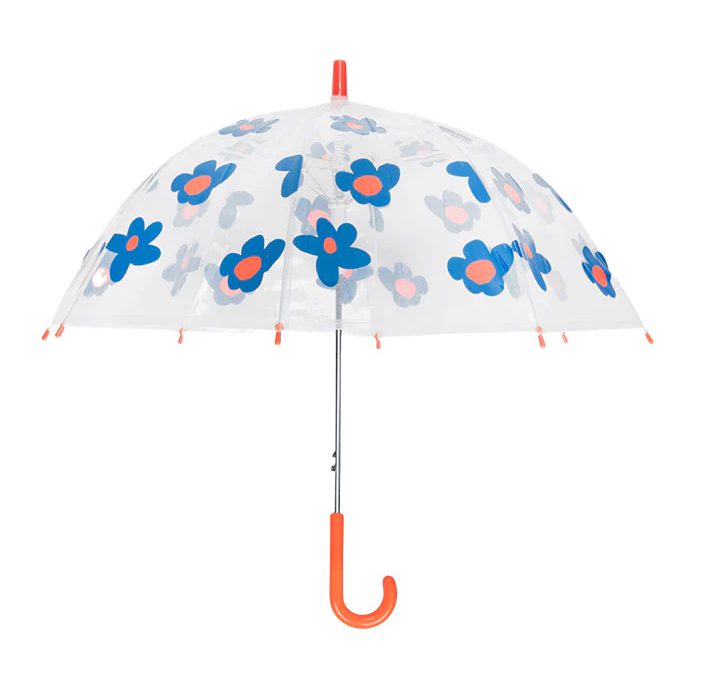 Encore plus de « Flower Fever » pour mettre un peu de bonheur dans ce ciel tout gris ! Avec une touche de bleu et orange pop qui donne du pep’s, comme un soleil qui rend instantanément happy, c’est l’effet parapluie de la joyeuse marque Mathilde Cabanas. Un indispensable pour avoir le smile tous les jours de pluie. Grâce à son joli motif Fleur, votre enfant affrontera désormais la pluie avec le plus grand des sourires. Existe aussi en format pour adulte ici !