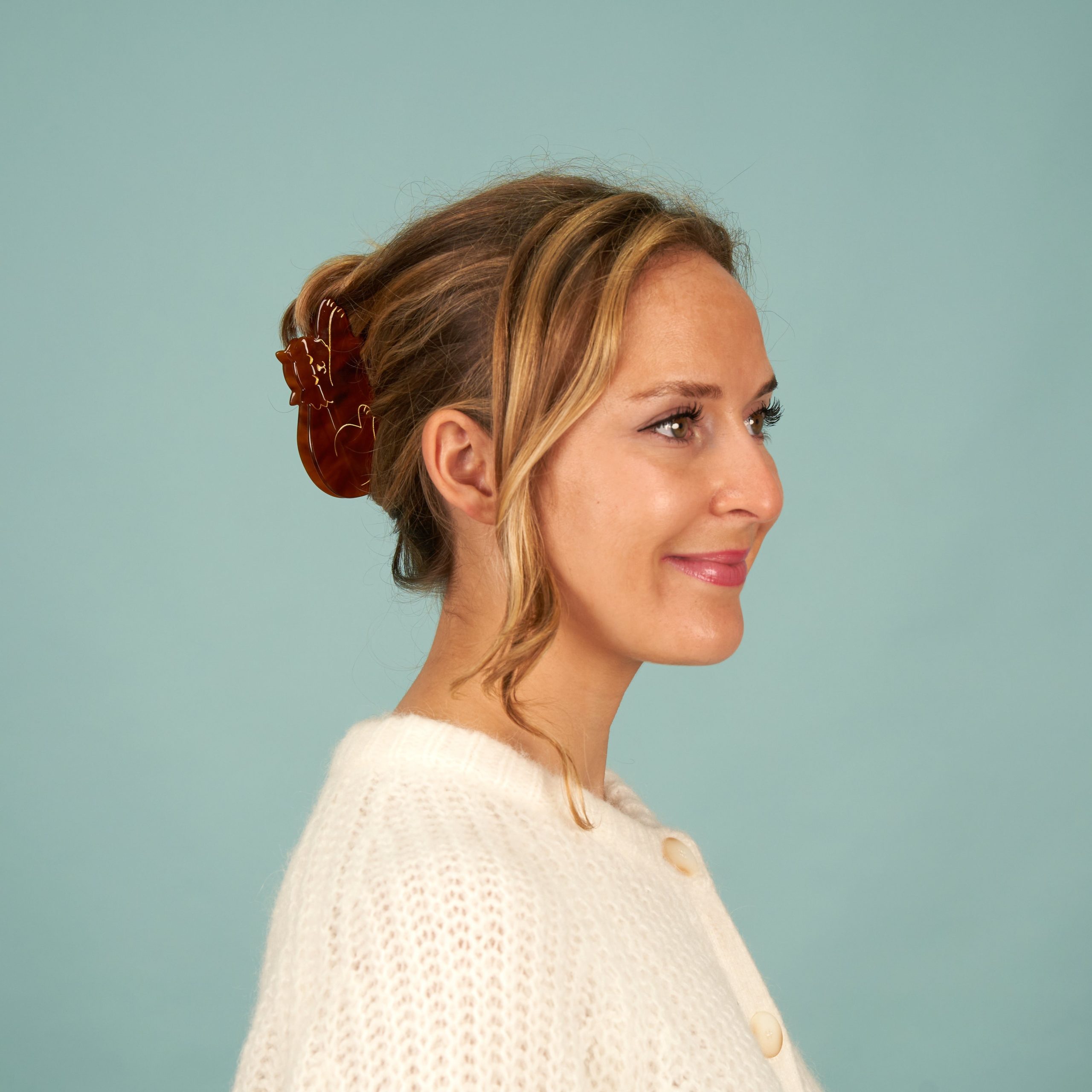Le plus mignon des chats marrons, surpris en pleine sieste avec ses pattes allongées et son petit sourire coquin. Cette pince à cheveux féline ne demande qu’à se lover dans nos chignons pour un repos bien mérité. Cette pince à cheveux chat est faite à partir d’acetate de cellulose recyclée & biodégradable (Eco-Friendly).