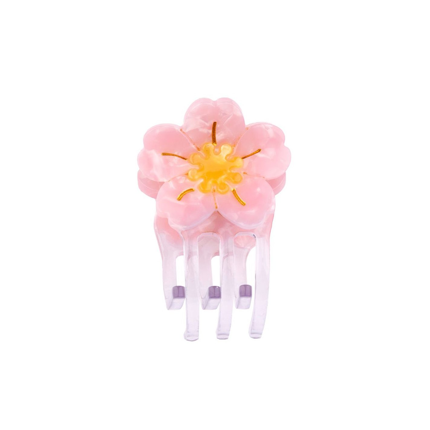 On adorait déjà la version classique de la pince Sakura, on fond désormais pour ce format mini ! Une délicate petite fleur rose et jaune pour ajouter de la couleur et de la poésie à nos coiffures. À garder toujours sur soi en l’agrippant à sa anse de sac à main ! Fabriquée à partir d’acetate de cellulose recyclée & biodégradable (Eco-Friendly).