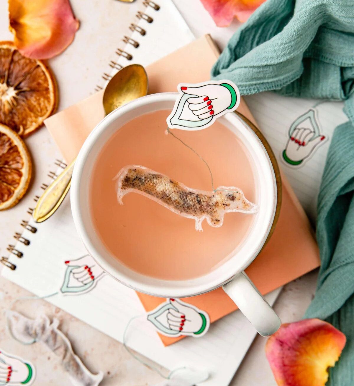 Profitez d’un moment de détente avec un bon thé Tea Heritage et leurs sachets aux formes uniques et originales ! Ces jolis sachets sont fabriqués à la main avec du fil en coton bio ne contenant pas de produits chimiques et qui ne déteint pas dans l’eau bouillante. Pour le tissu, il s’agit de gaze alimentaire biodégradable. Ce thé noir bio earl grey est un délice ! Lot de 5 sachets chien teckel et étiquette main avec laisse.