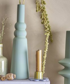 La marque danoise Bloomingville nous offre ici un magnifique vase en céramique. On aime beaucoup sa simplicité et sa forme allongée. Un objet chic de couleur vert pastel qui ira dans tout type d’intérieur. Parfait pour accueillir une belle rose ou une simple fleur dans le séjour ou la chambre à coucher.